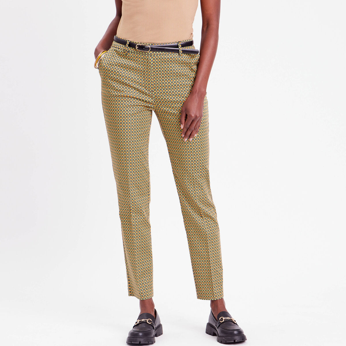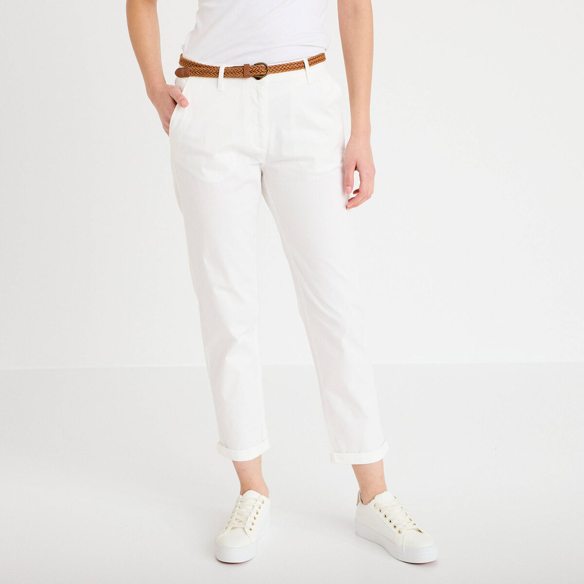 Pantalon city slim ceinturé blanc femme