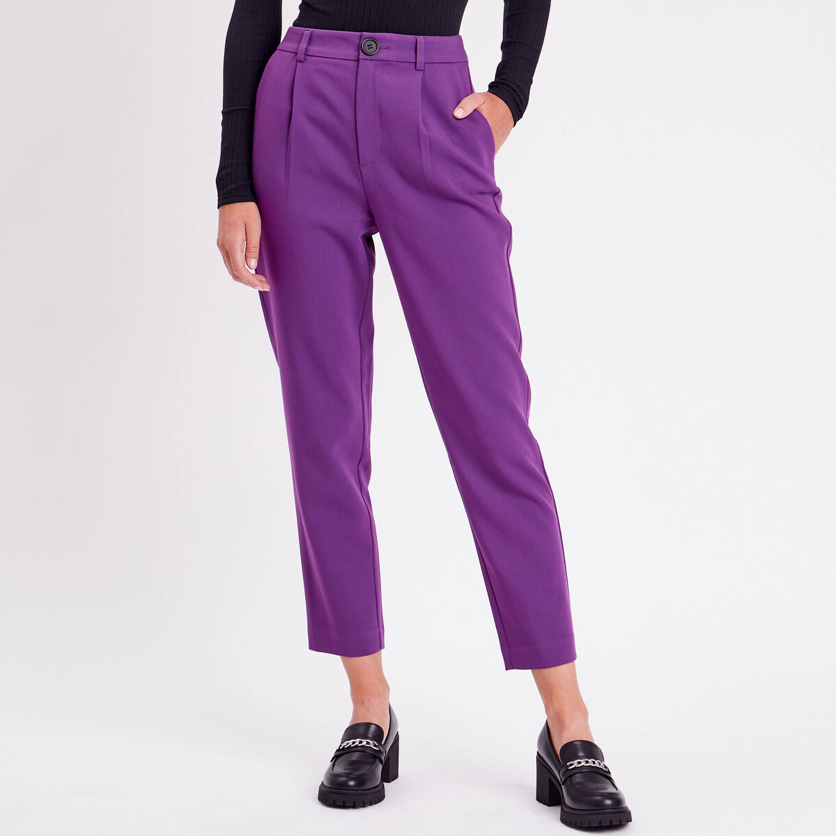Pantalon city carotte violet foncé femme