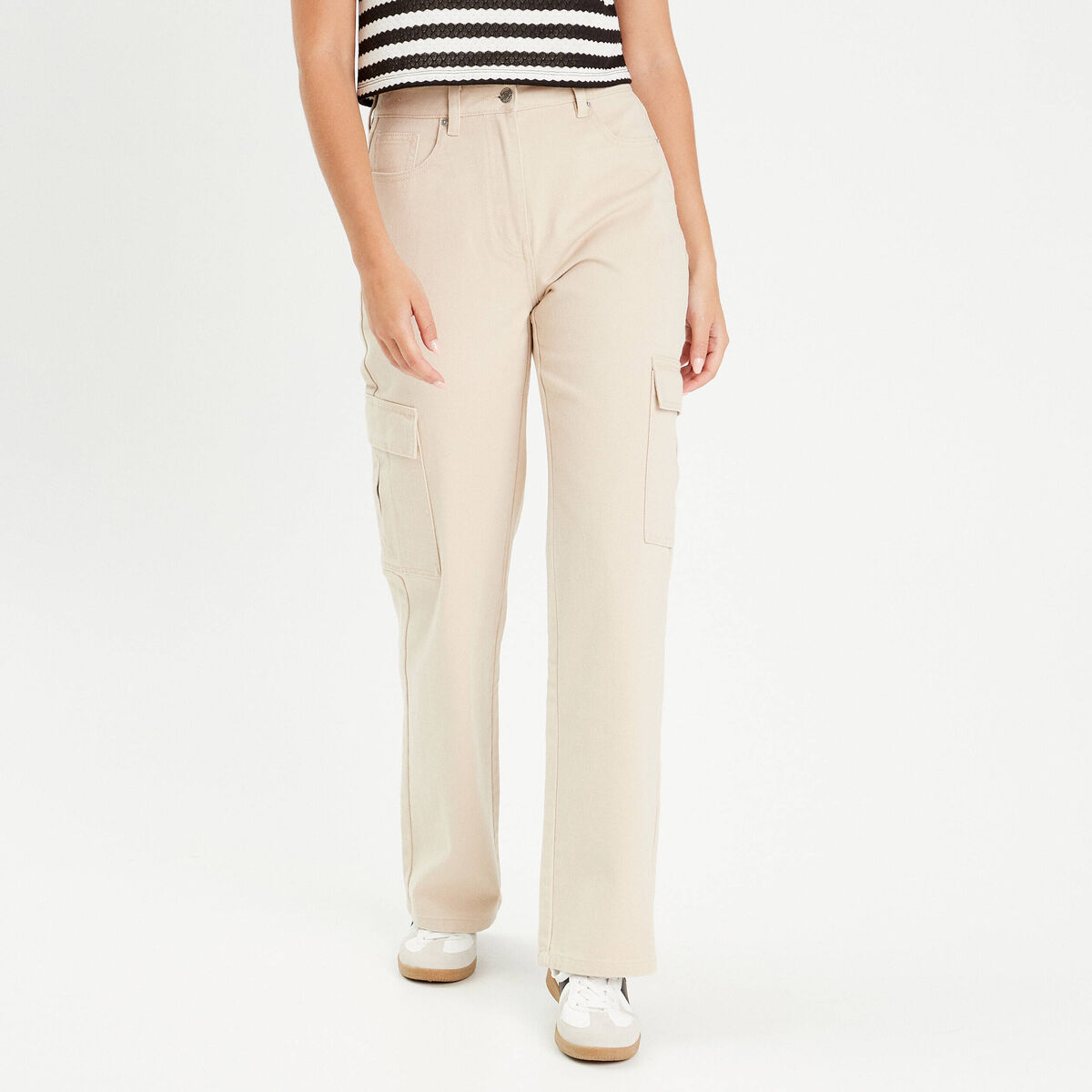 Pantalon cargo large ecru femme
