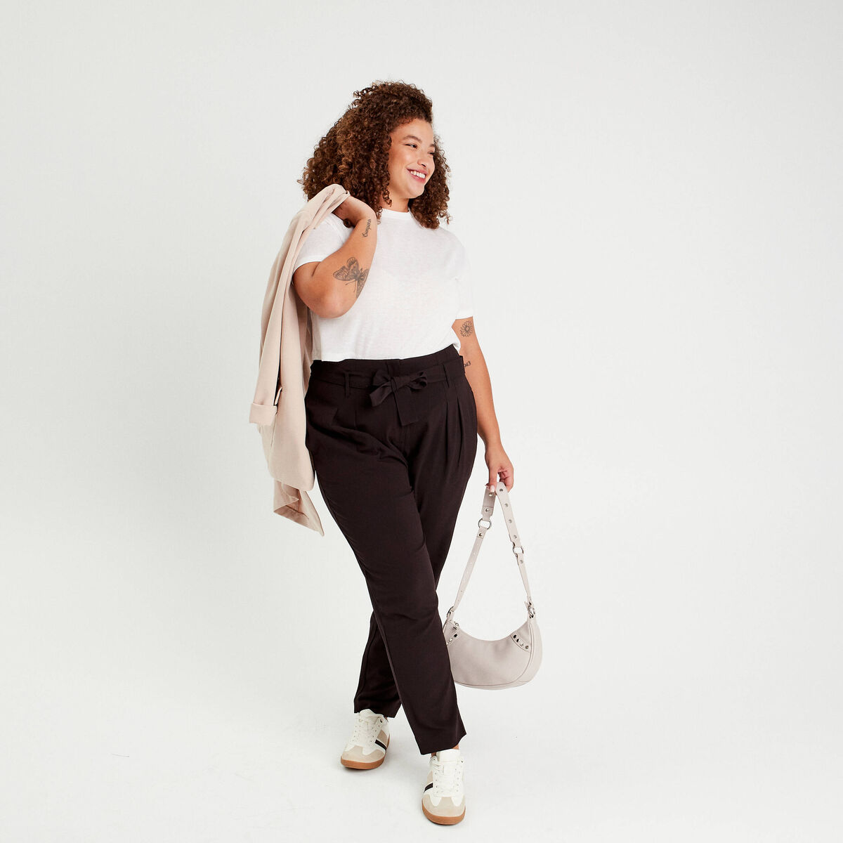 Pantalon paperbag fluide noir femme