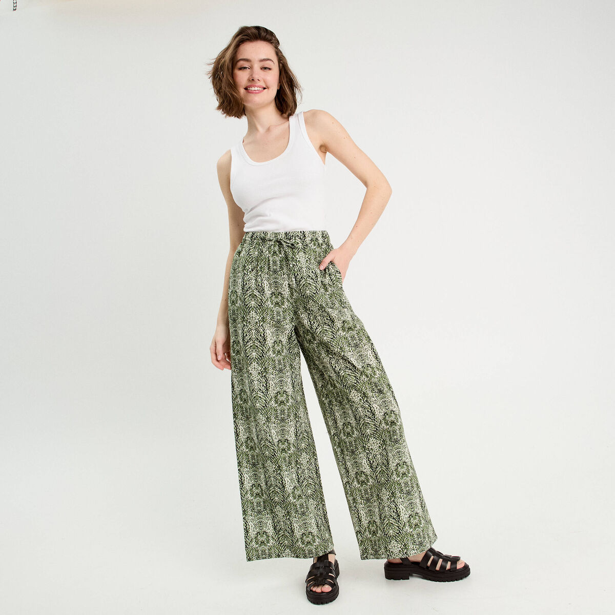 Pantalon city jambes larges vert femme