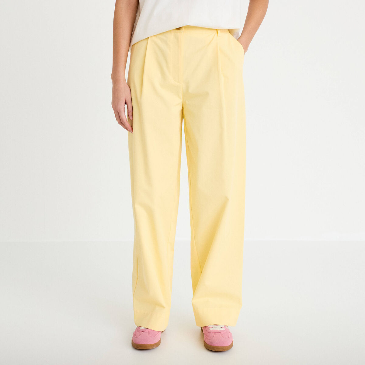 Pantalon large jaune clair femme