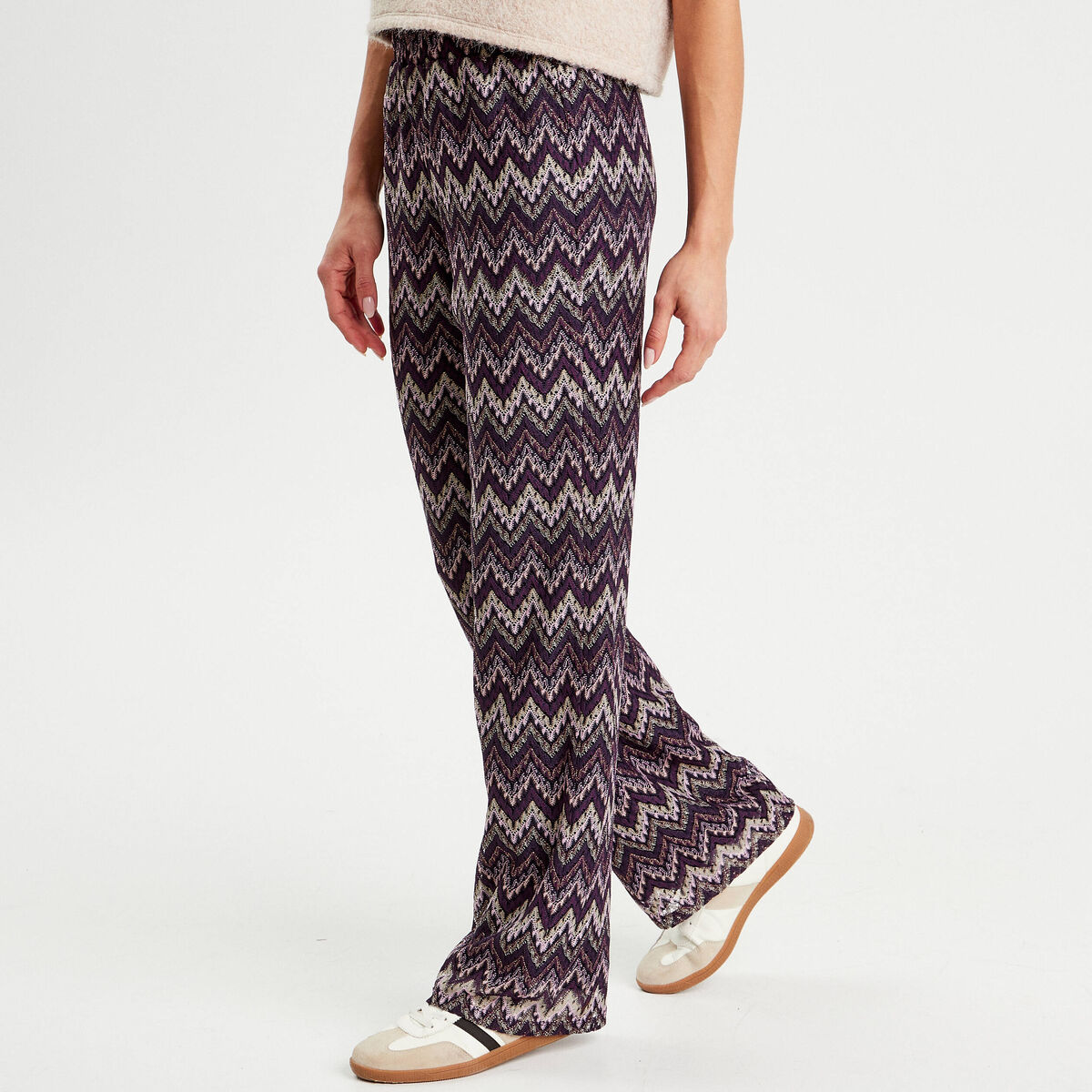 Pantalon large ajouré violet femme