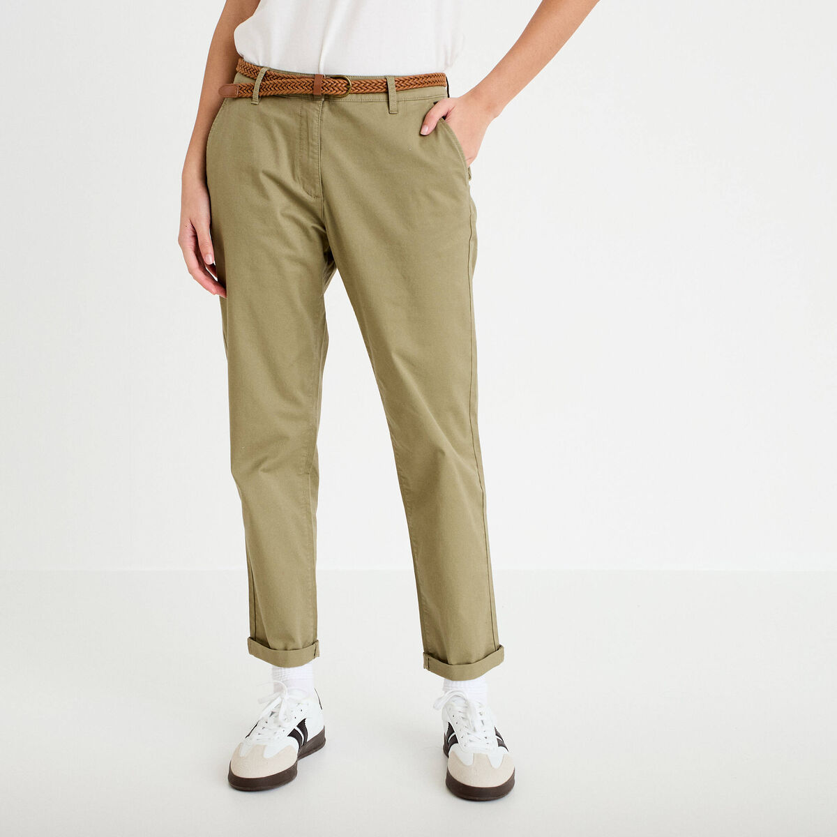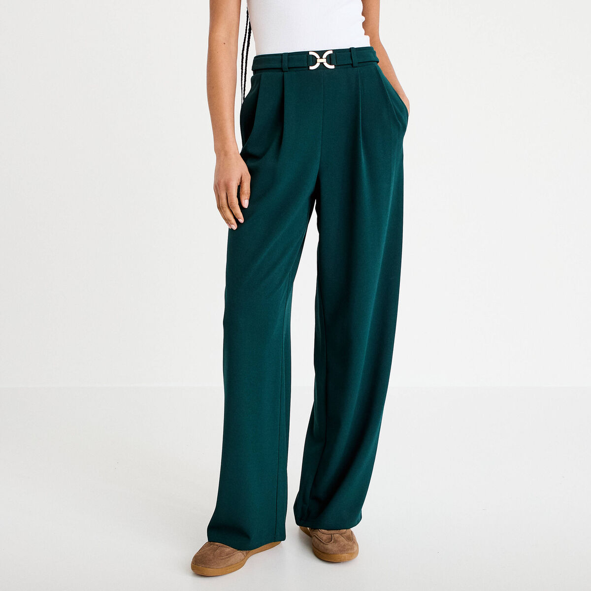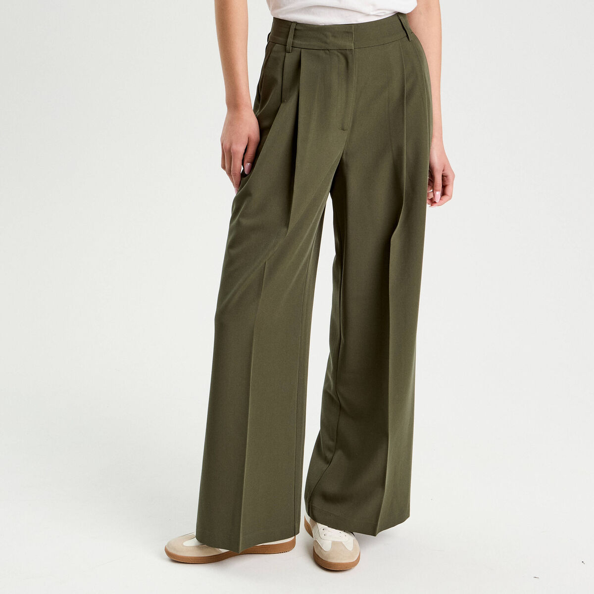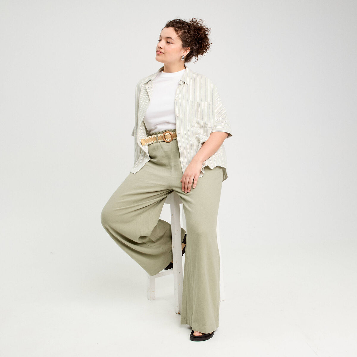 Pantalon large ceinturé contenant du lin vert kaki femme