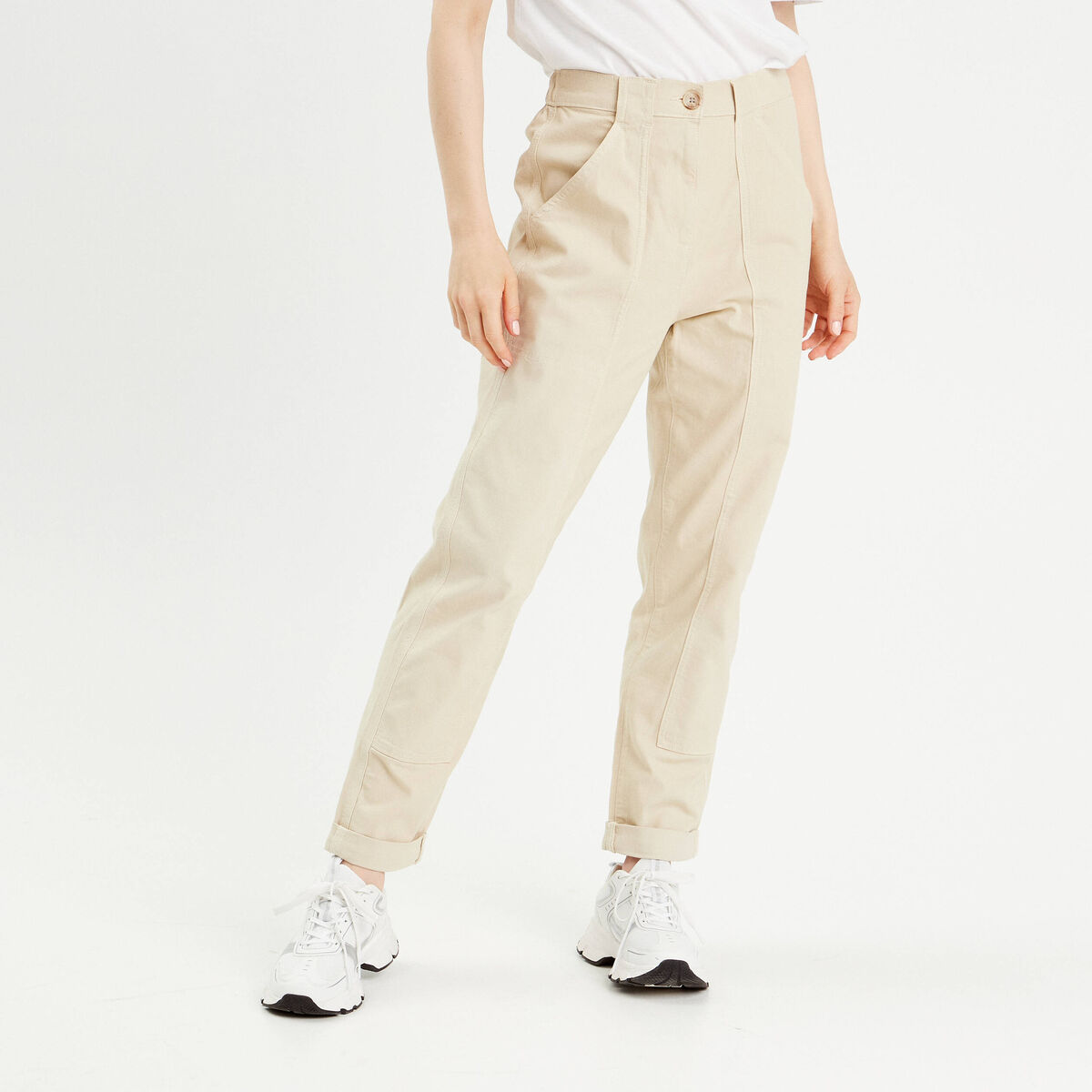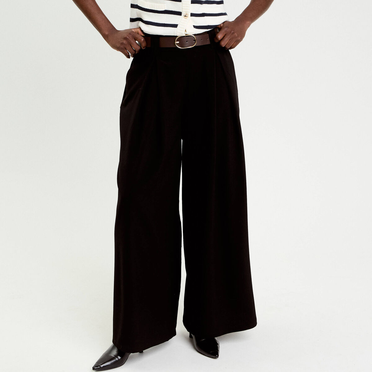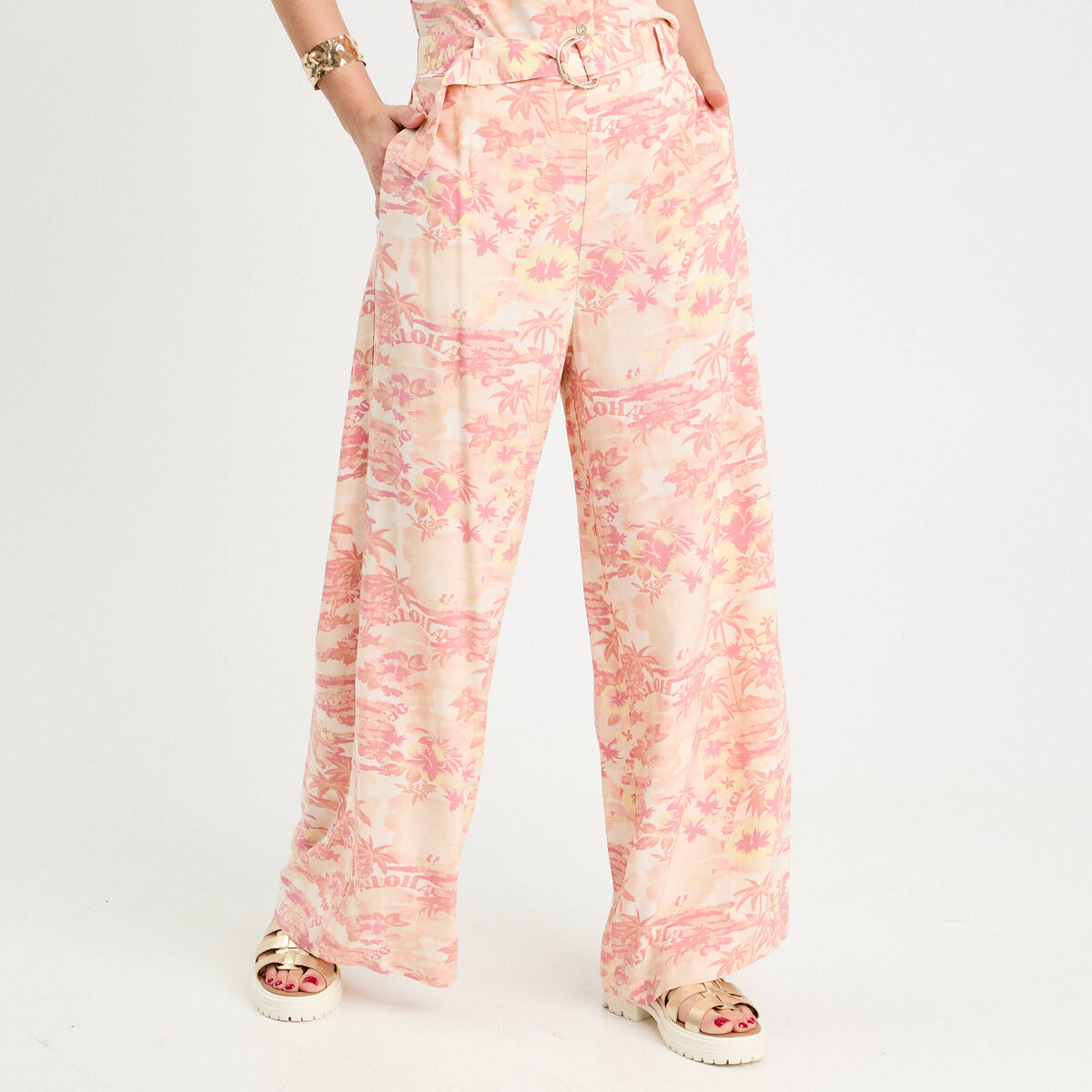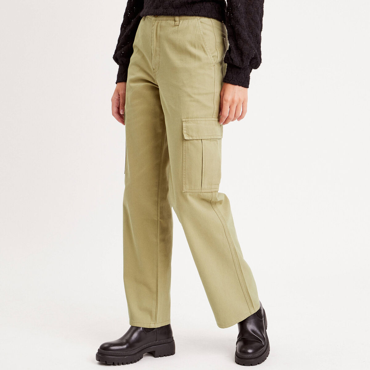 Pantalon large ceinturé contenant du lin vert kaki femme
