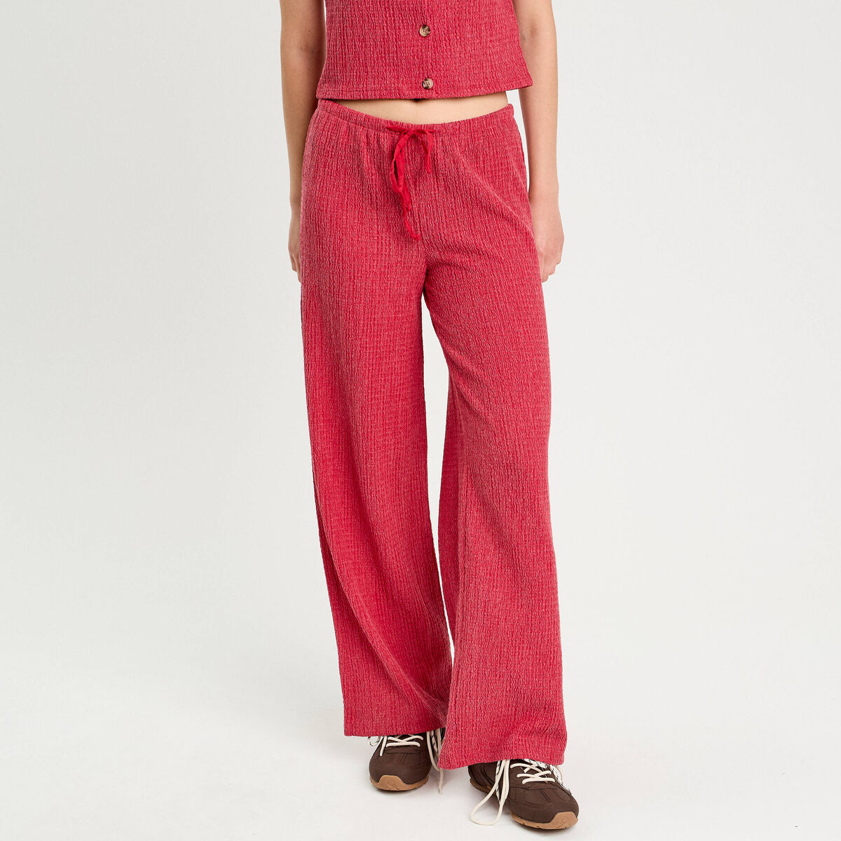 Pantalon large rouge foncé femme