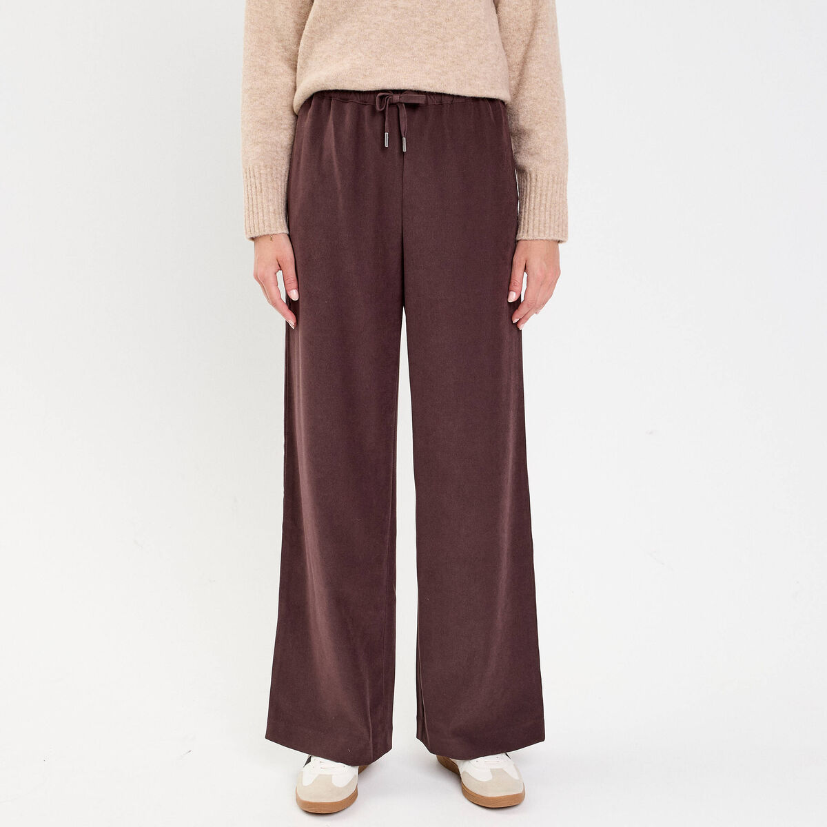 Pantalon large fluide marron foncé femme