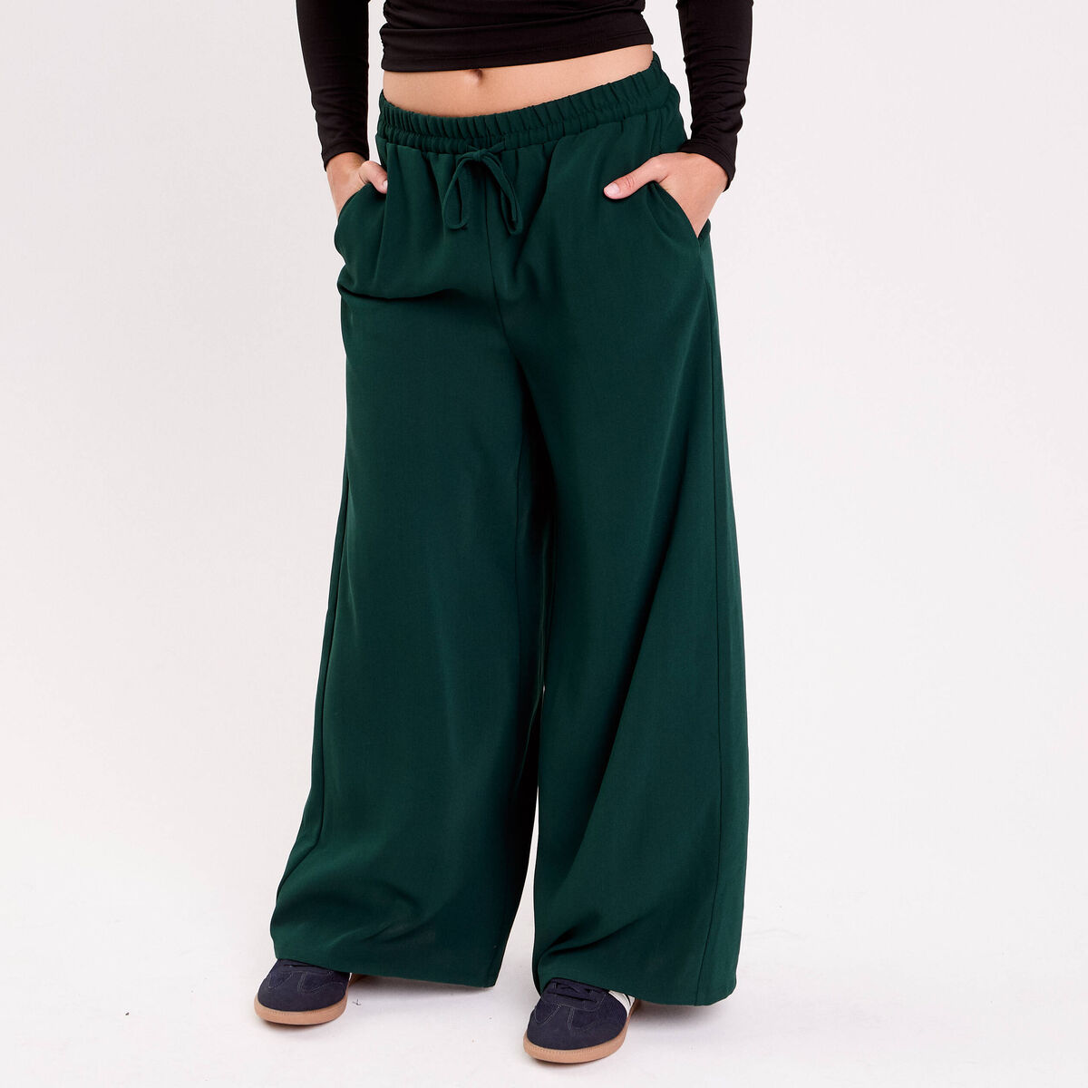 Pantalon large vert foncé femme