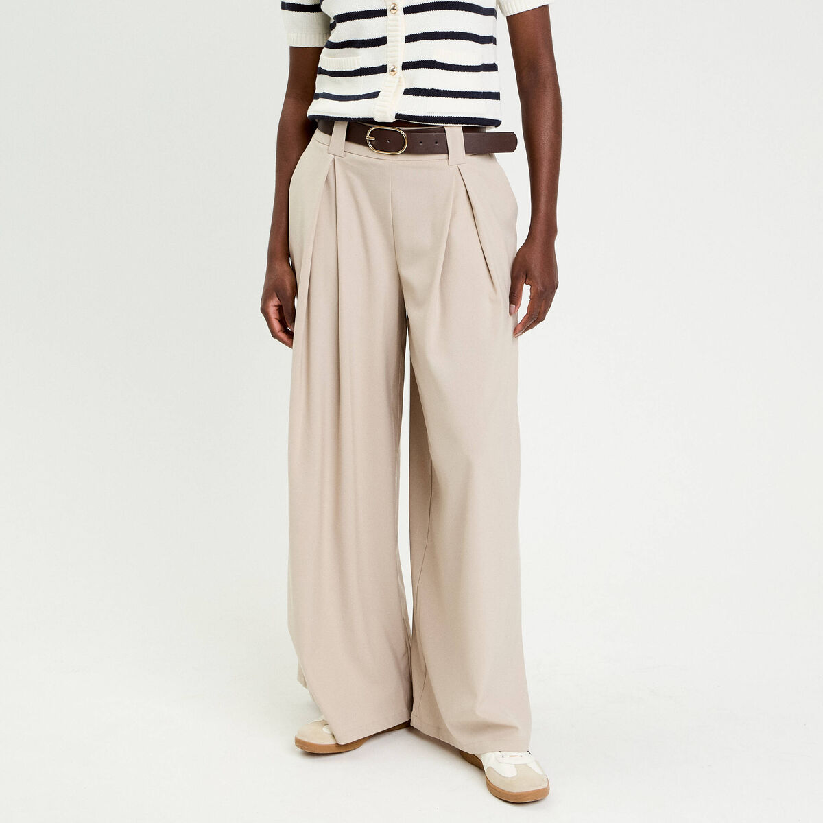 Pantalon large avec ceinture beige femme
