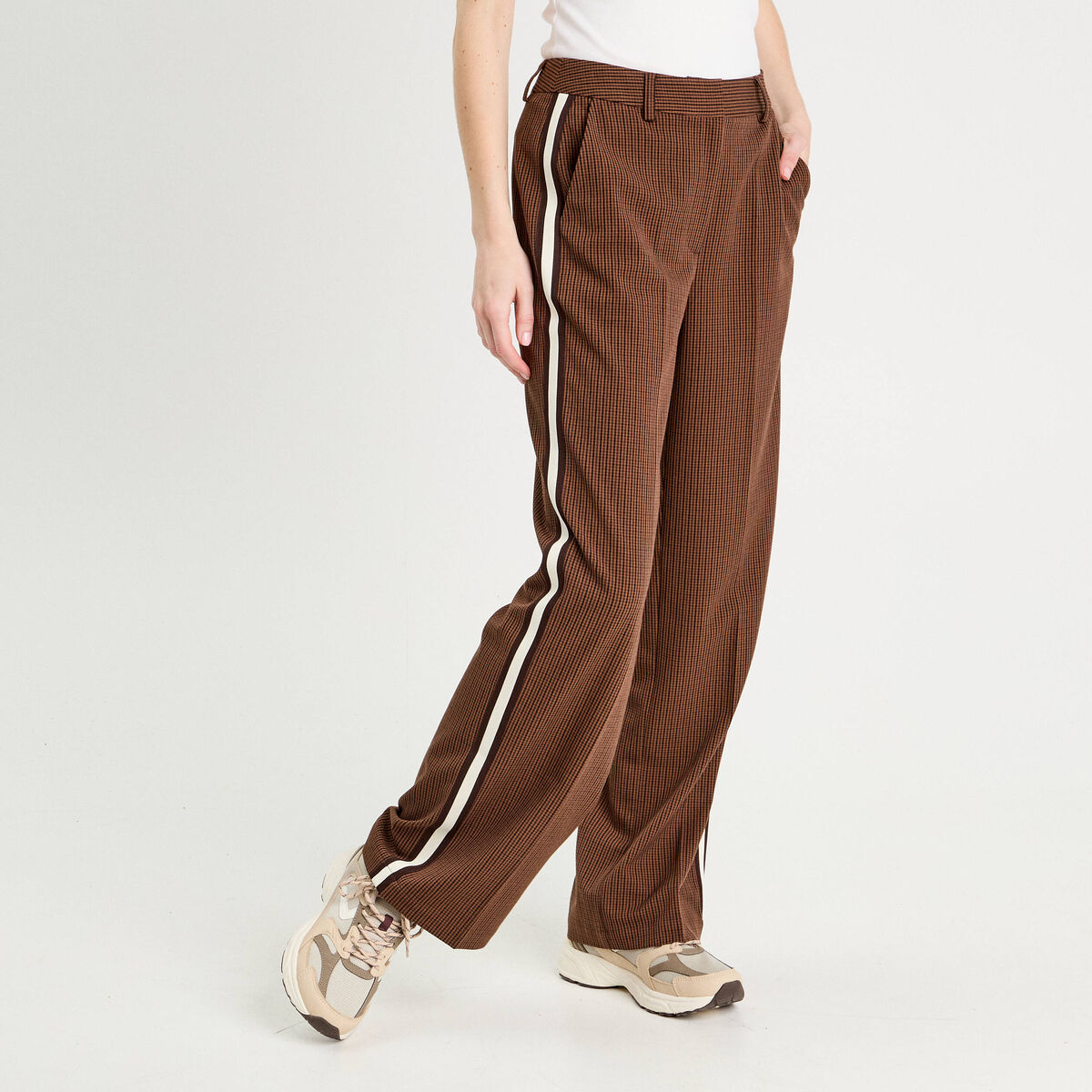Pantalon large bandes côtés marron foncé femme