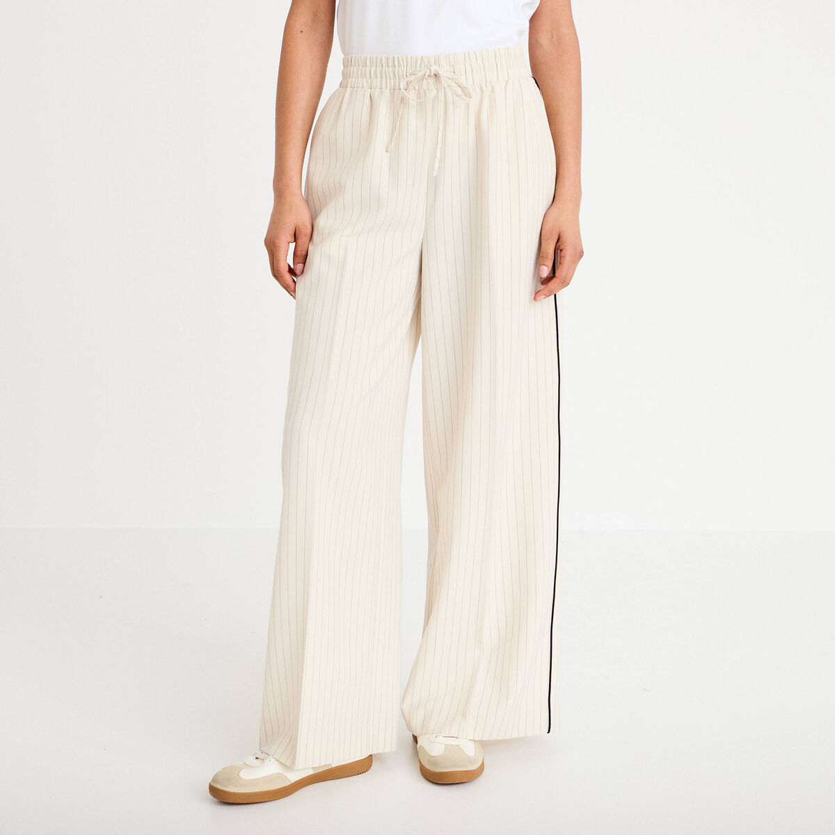 Pantalon large fluide ecru femme