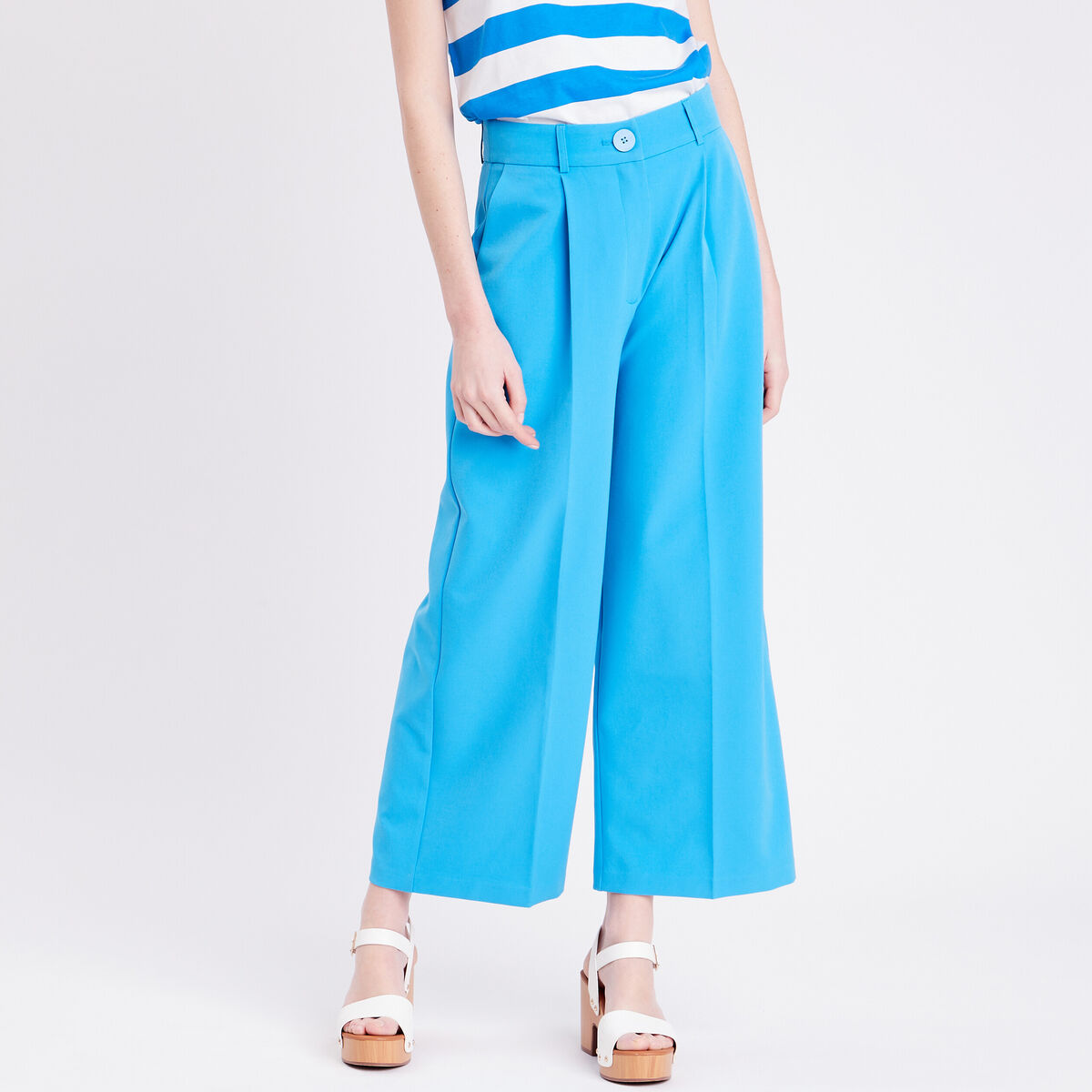 Pantalon city large bleu femme