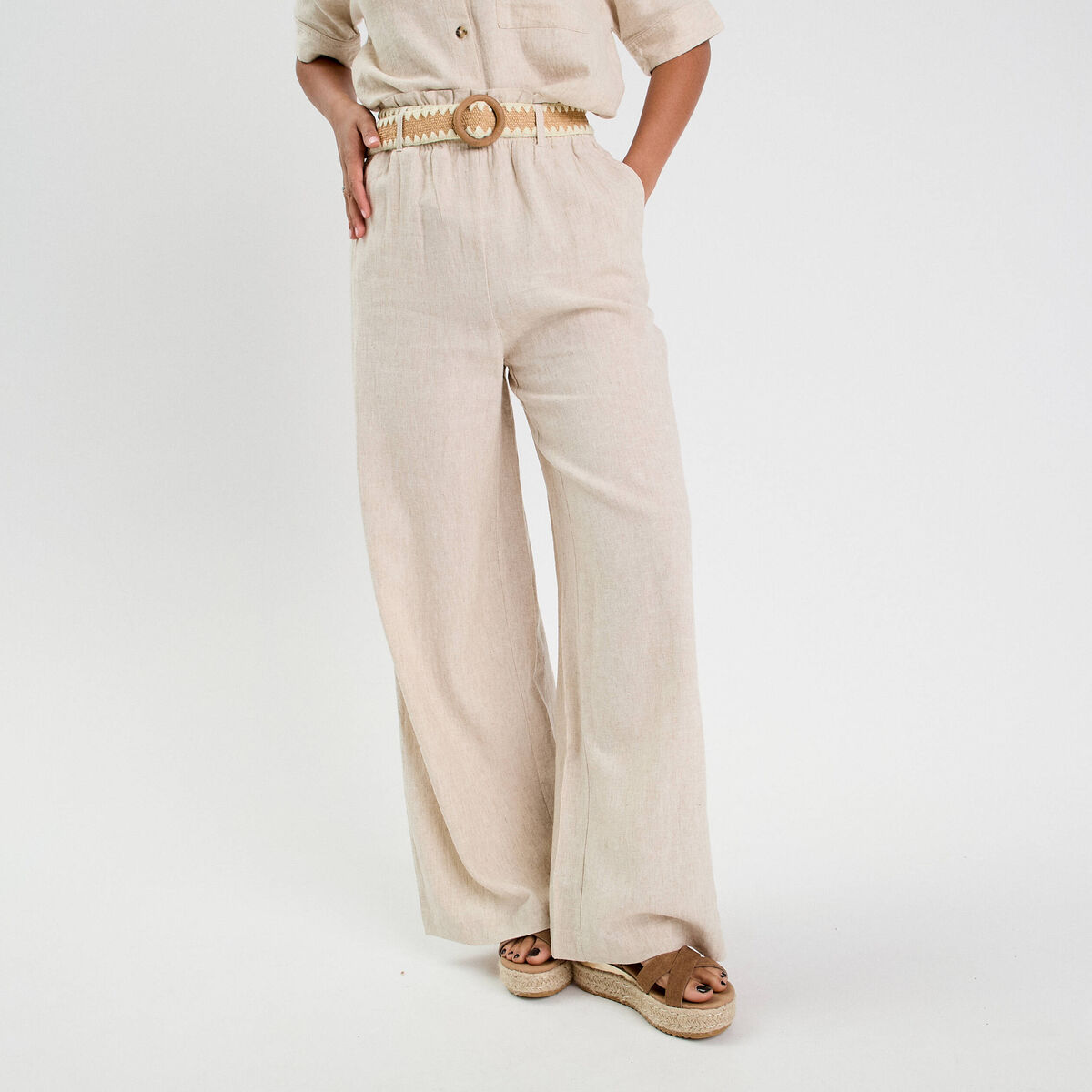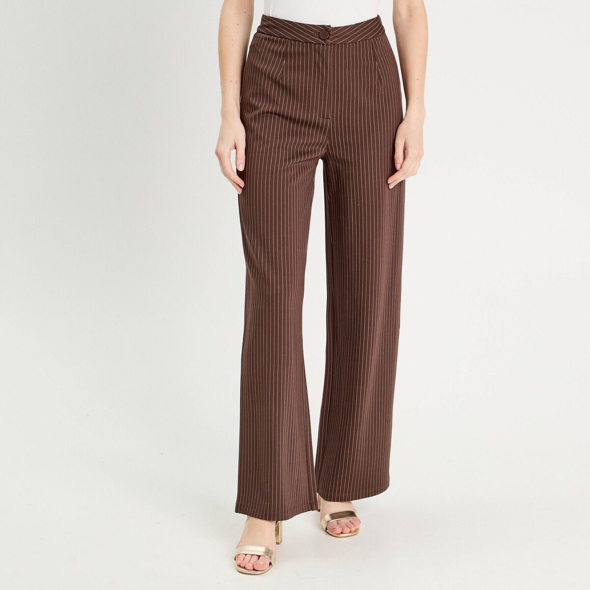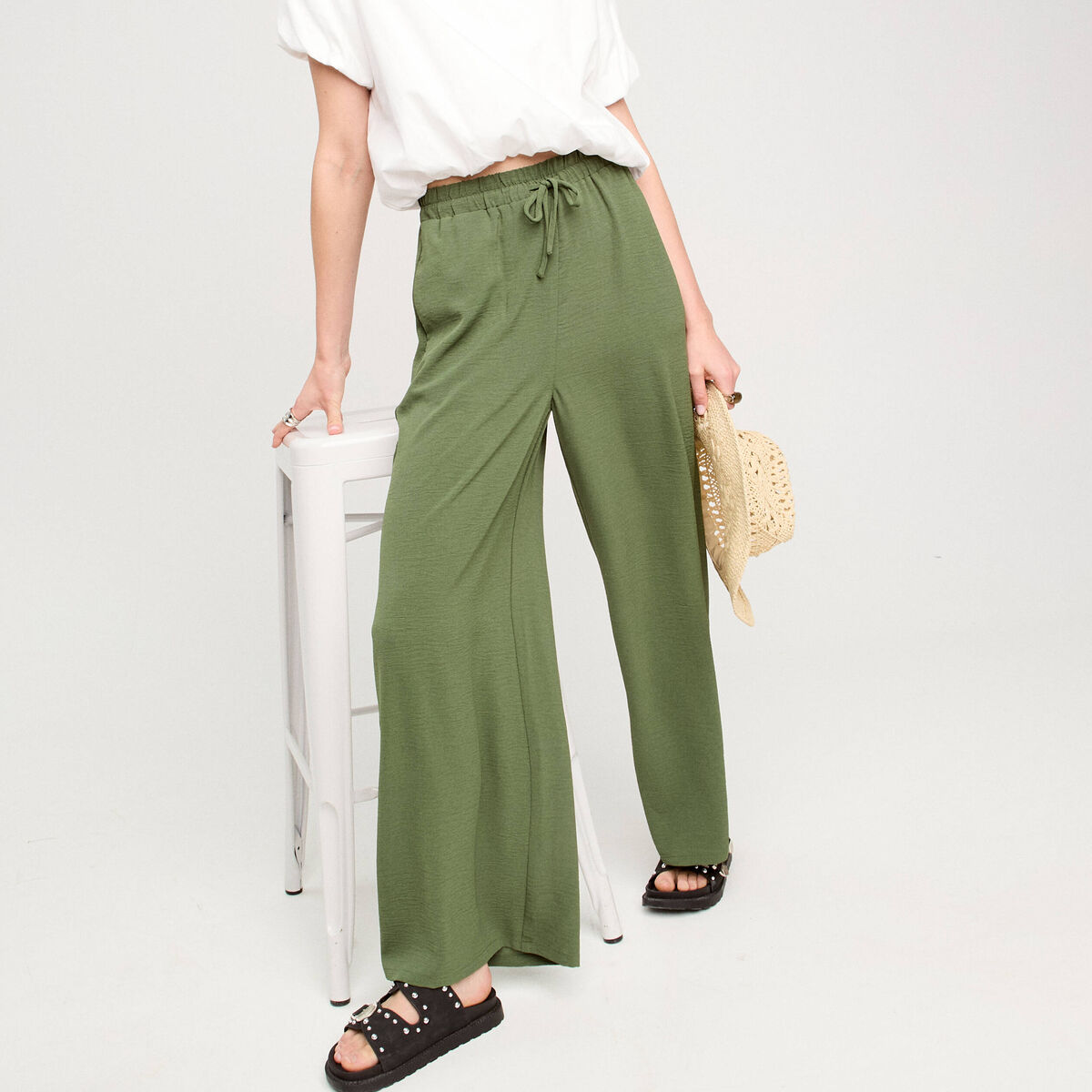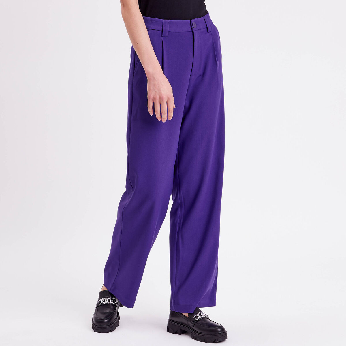 Pantalon bootcut taille haute fluide bleu foncé femme