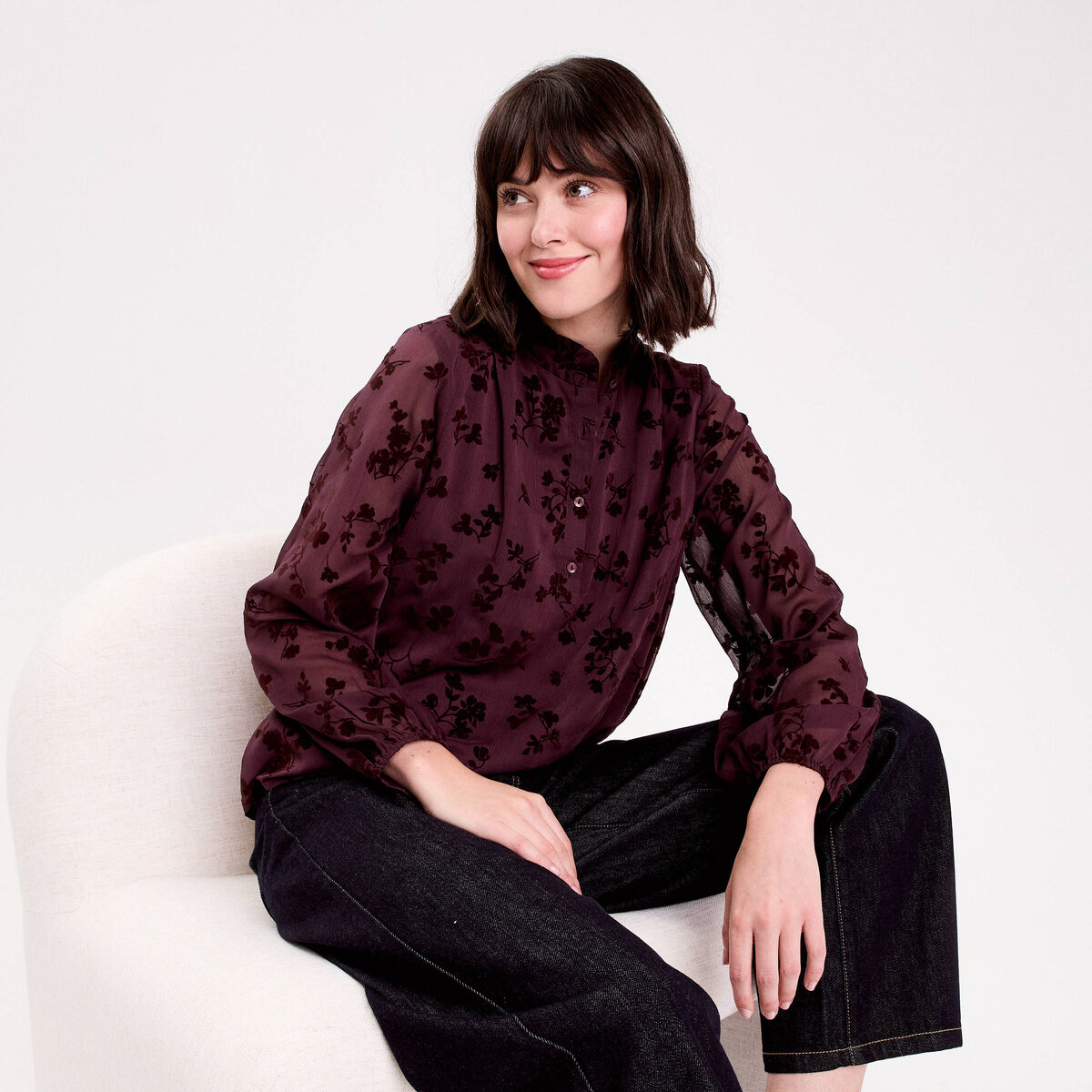 Blouse fluide manches longues marron cognac femme