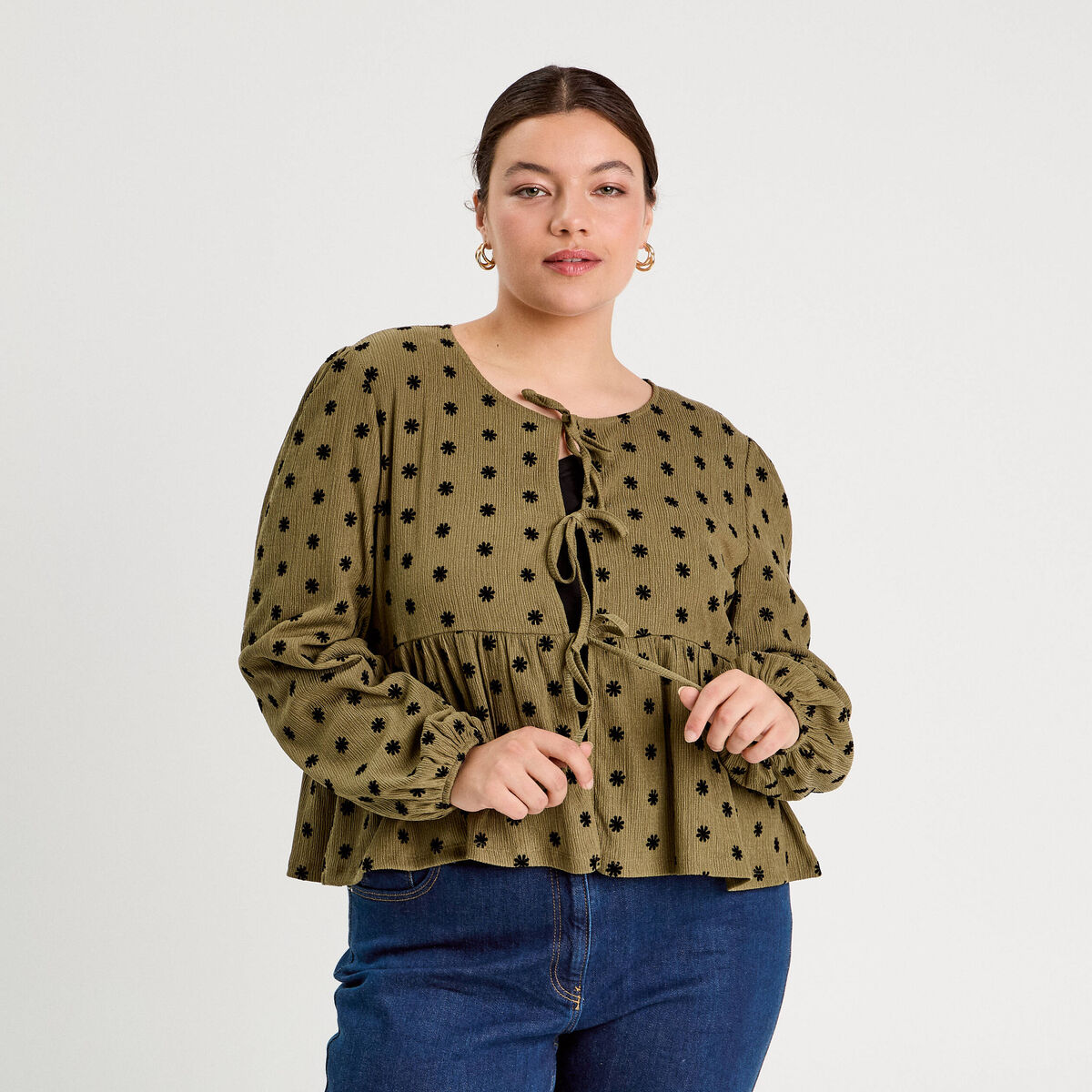 Blouse avec noeuds beige femme