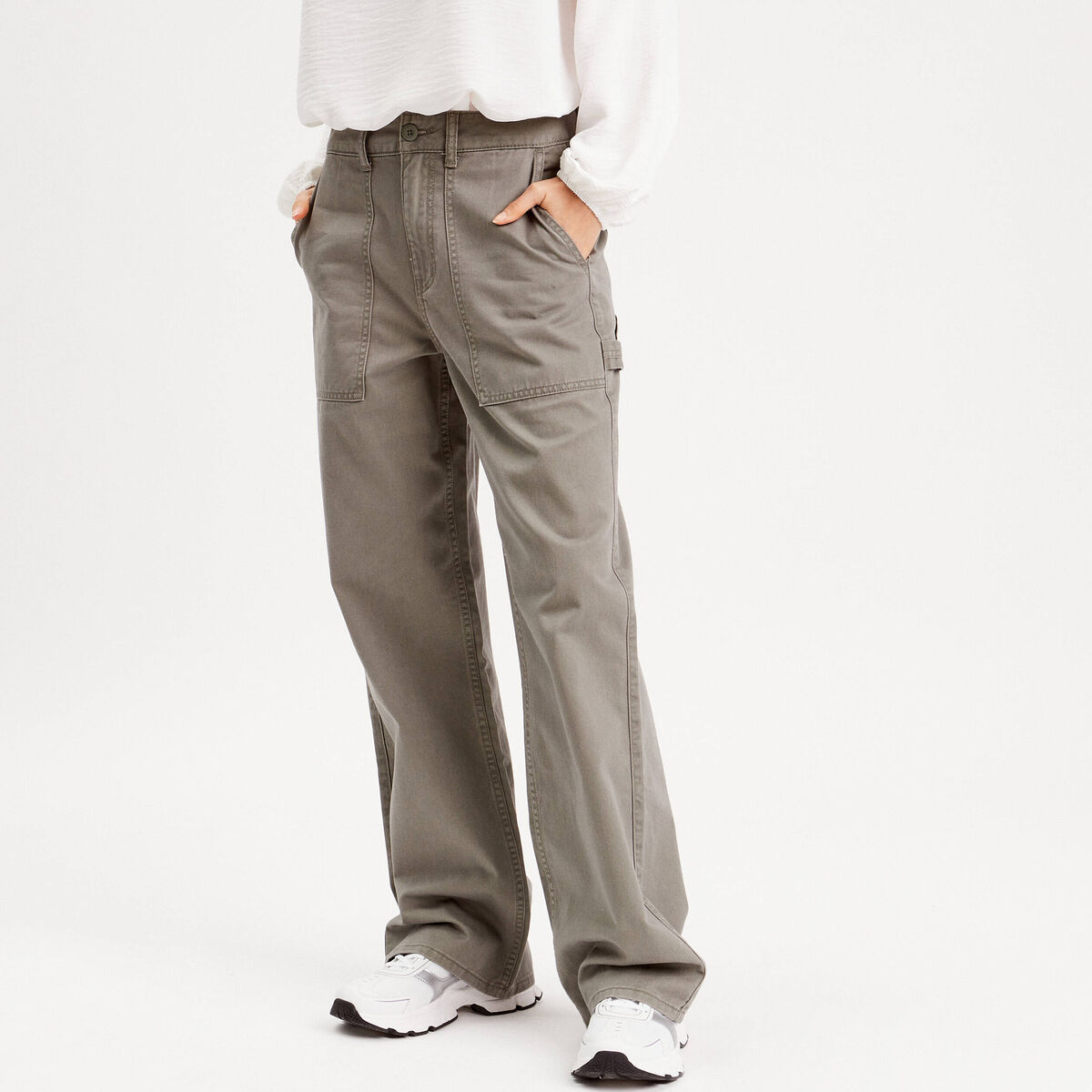 Pantalon jambe large vert kaki femme