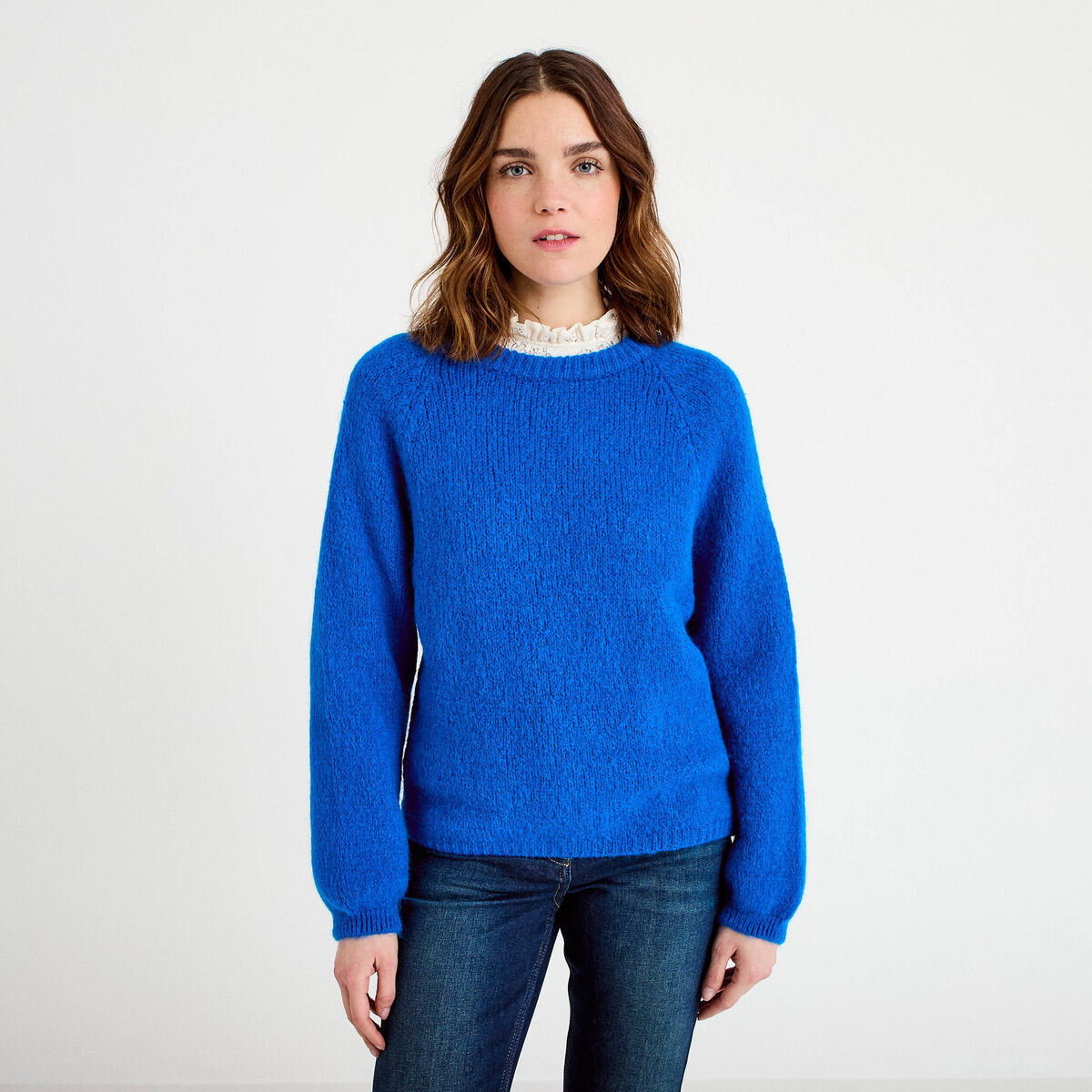 Pull ample col rond manches longues bleu electrique femme