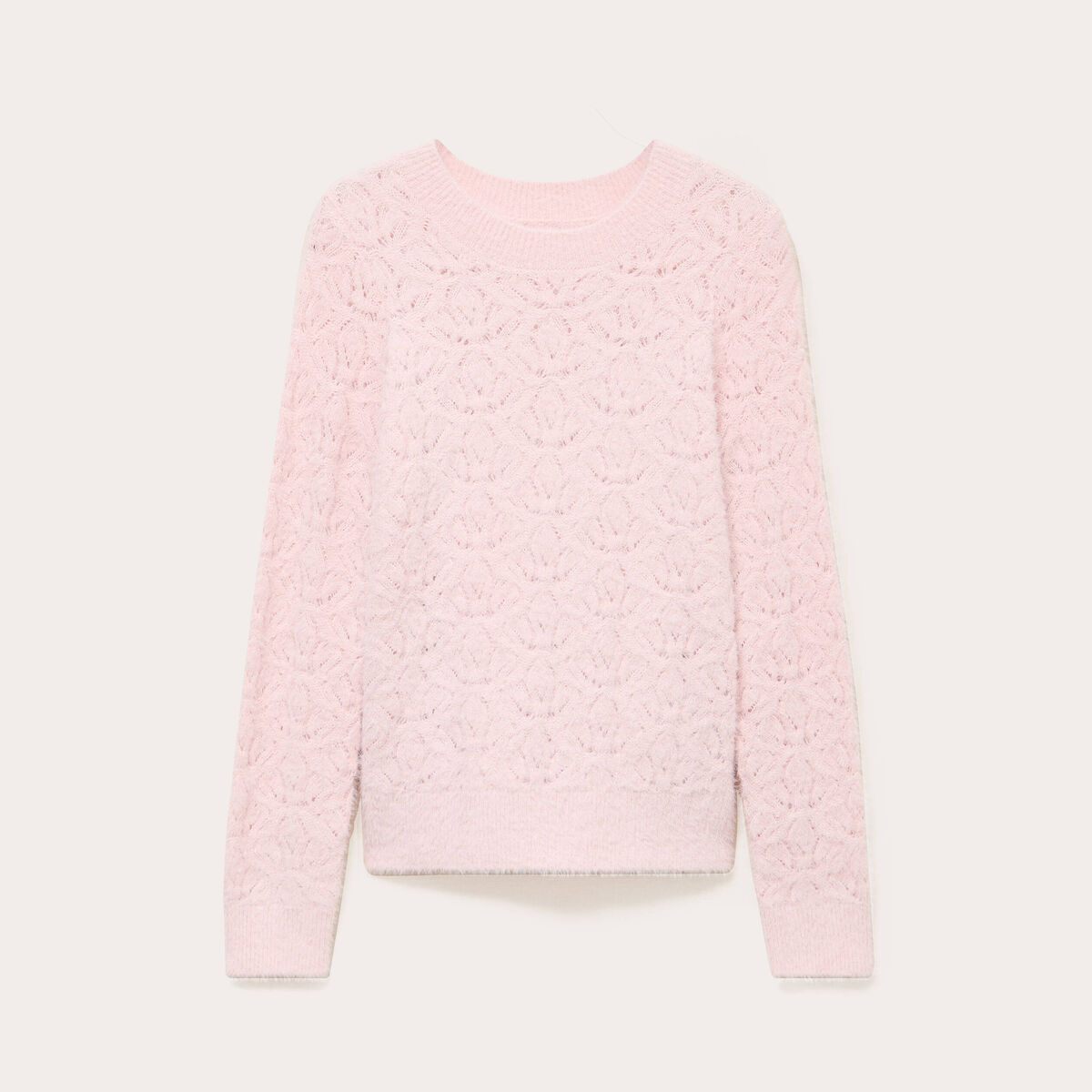 Pull ajouré col rond manches longues rose pastel femme