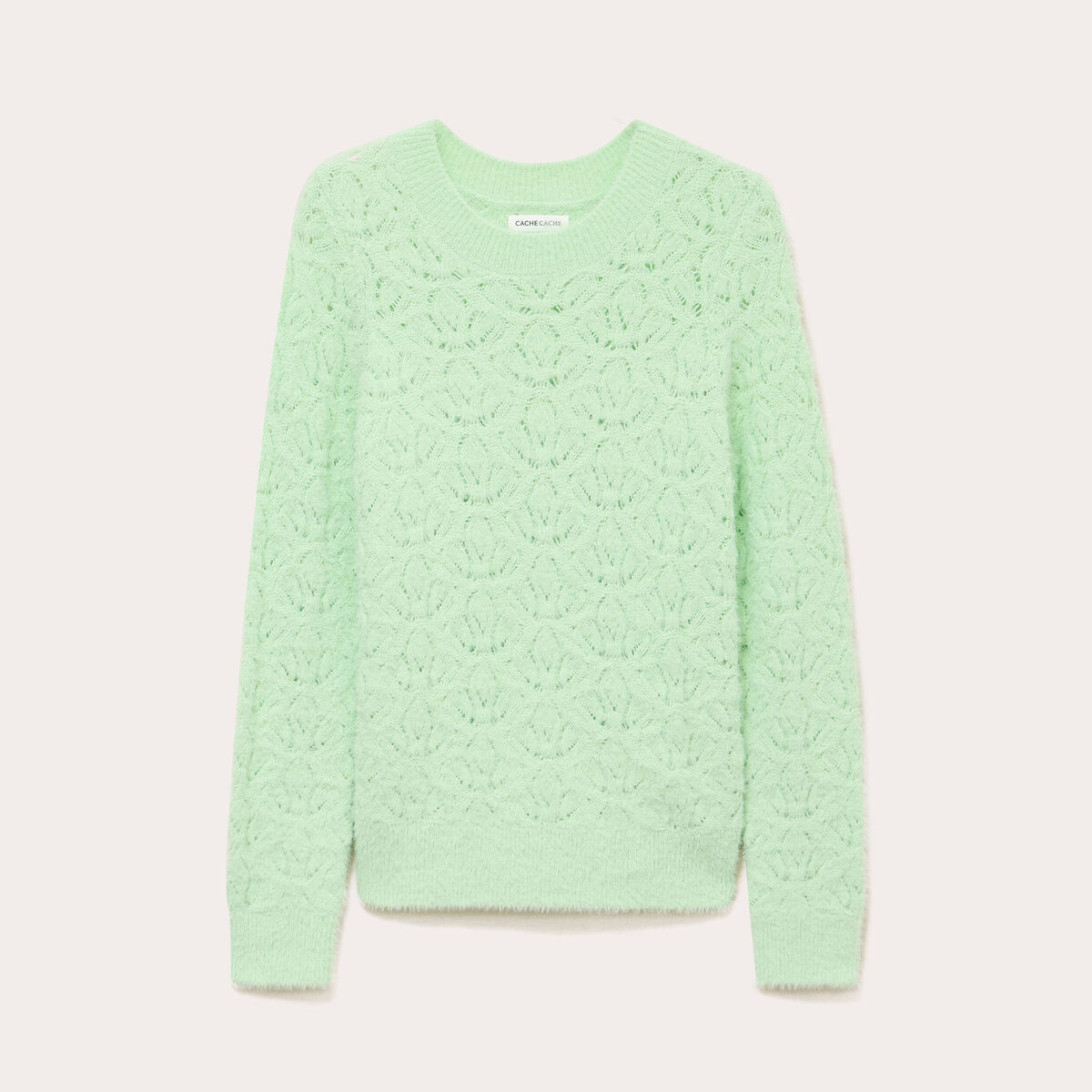 Pull ajouré col rond manches longues vert pastel femme