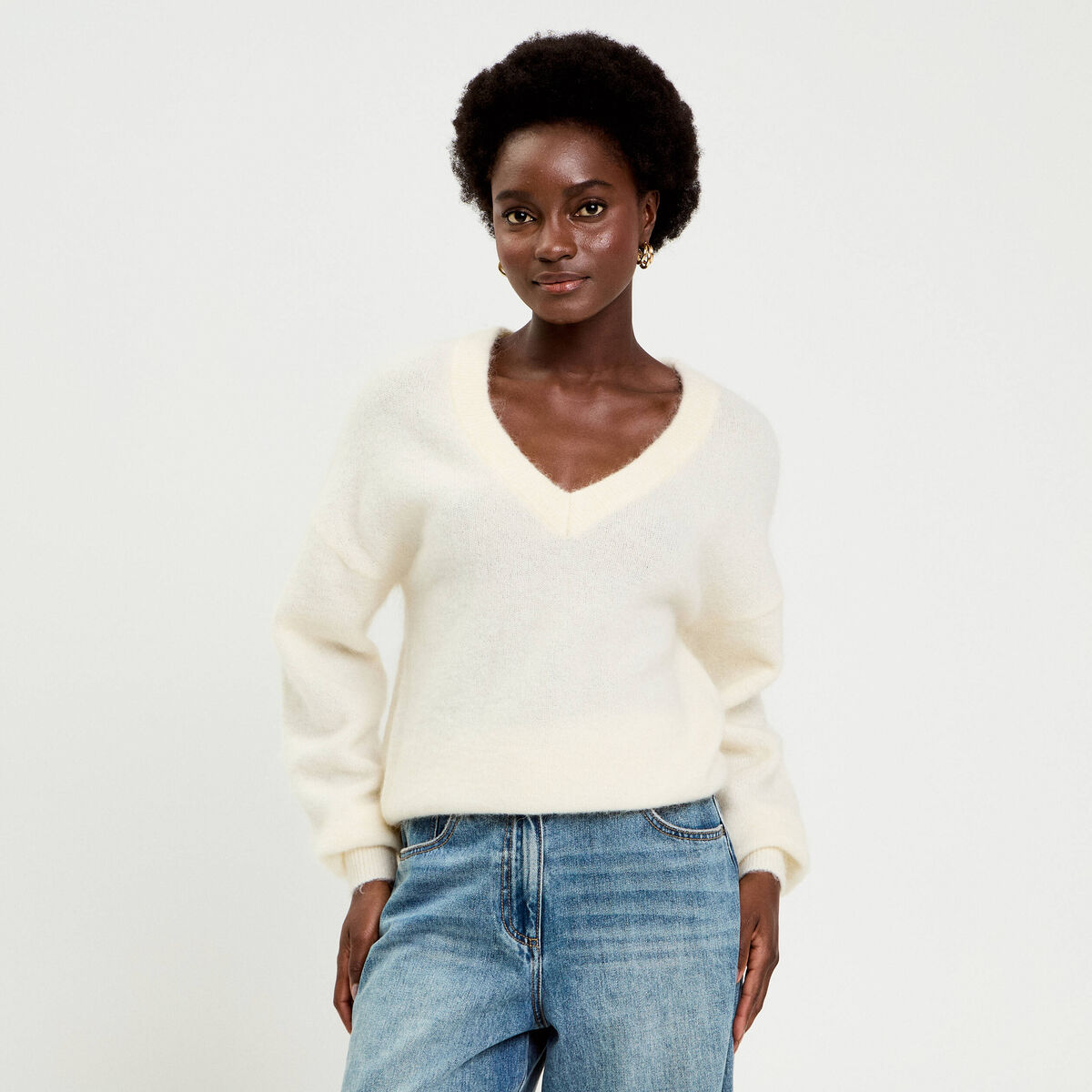 Pull duveteux ecru femme