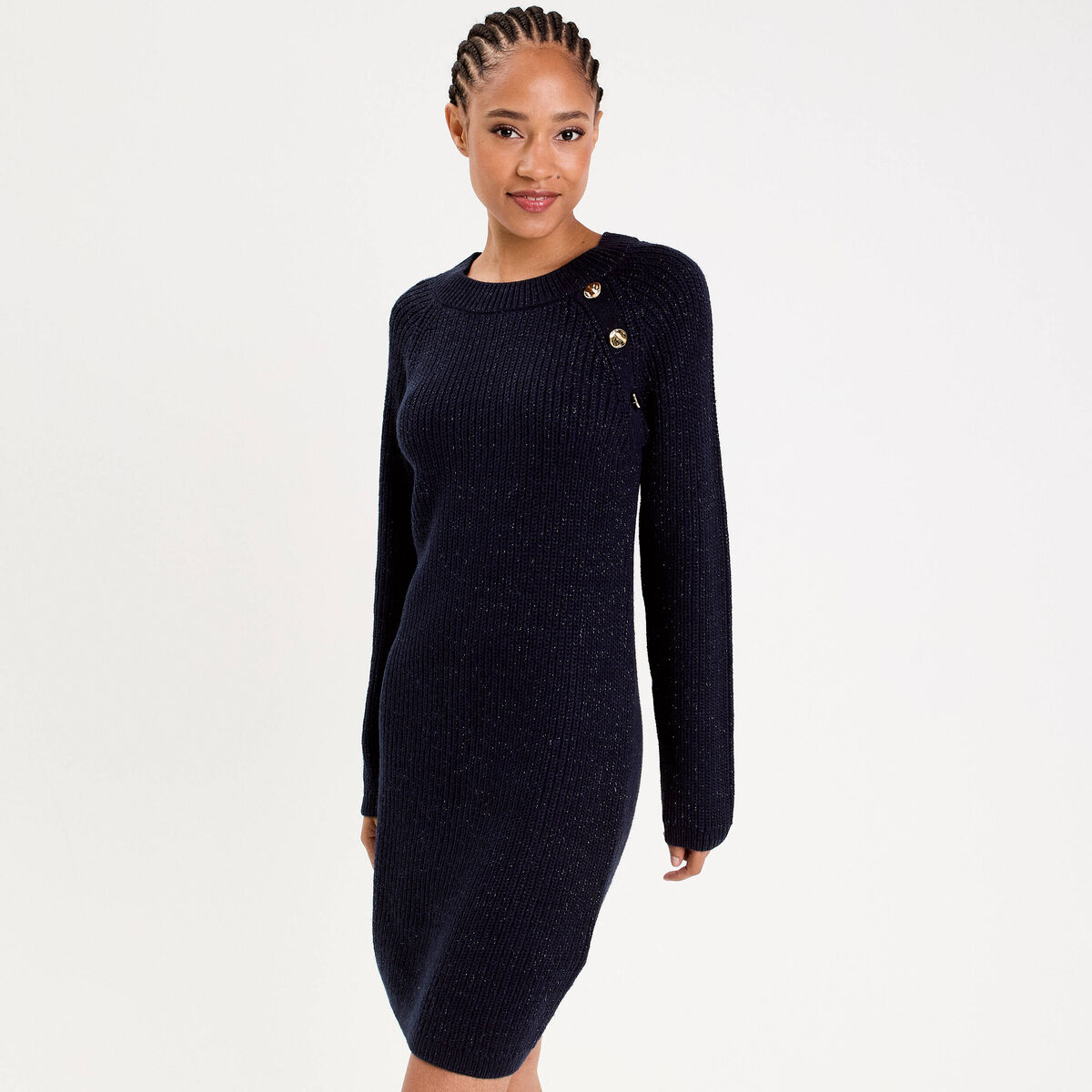 Robe pull détails de boutons bleu marine femme