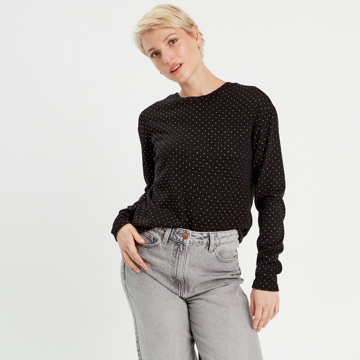 Pull manches courtes noir femme