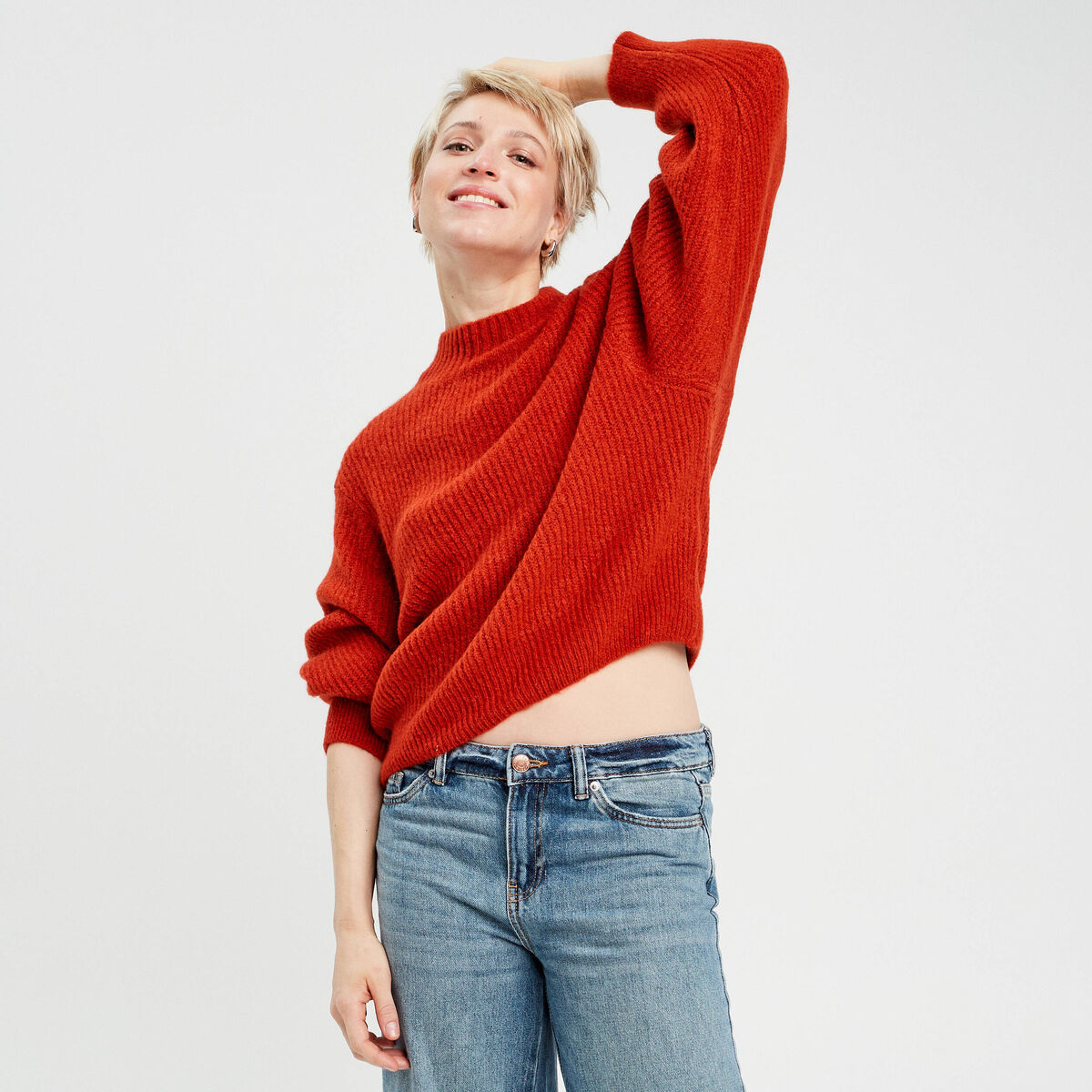 Pull manches longues ecru femme