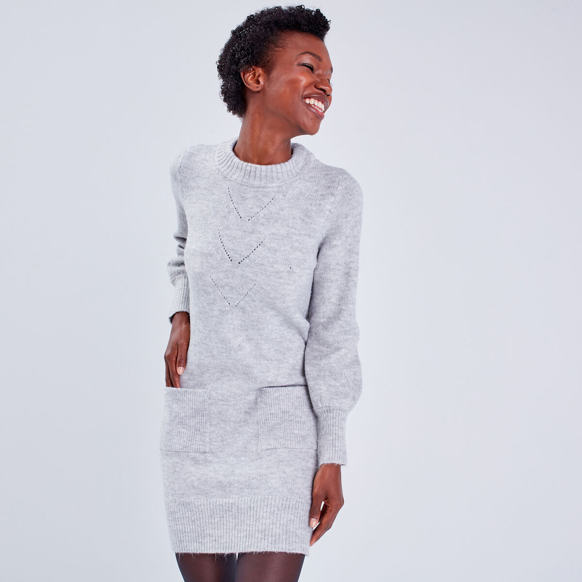 Robe pull droite gris clair femme