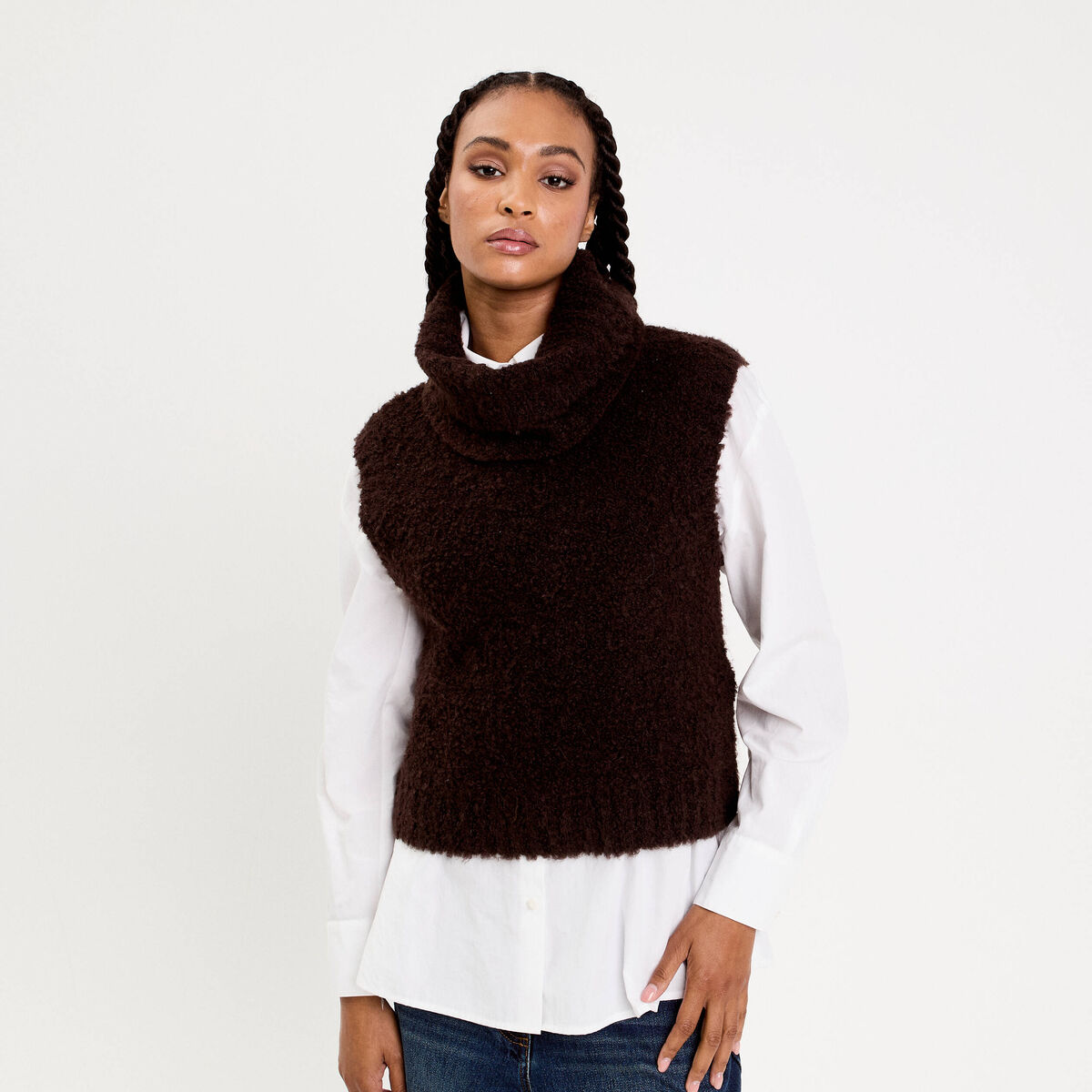 Pull 2-en-1 col amovible marron foncé femme