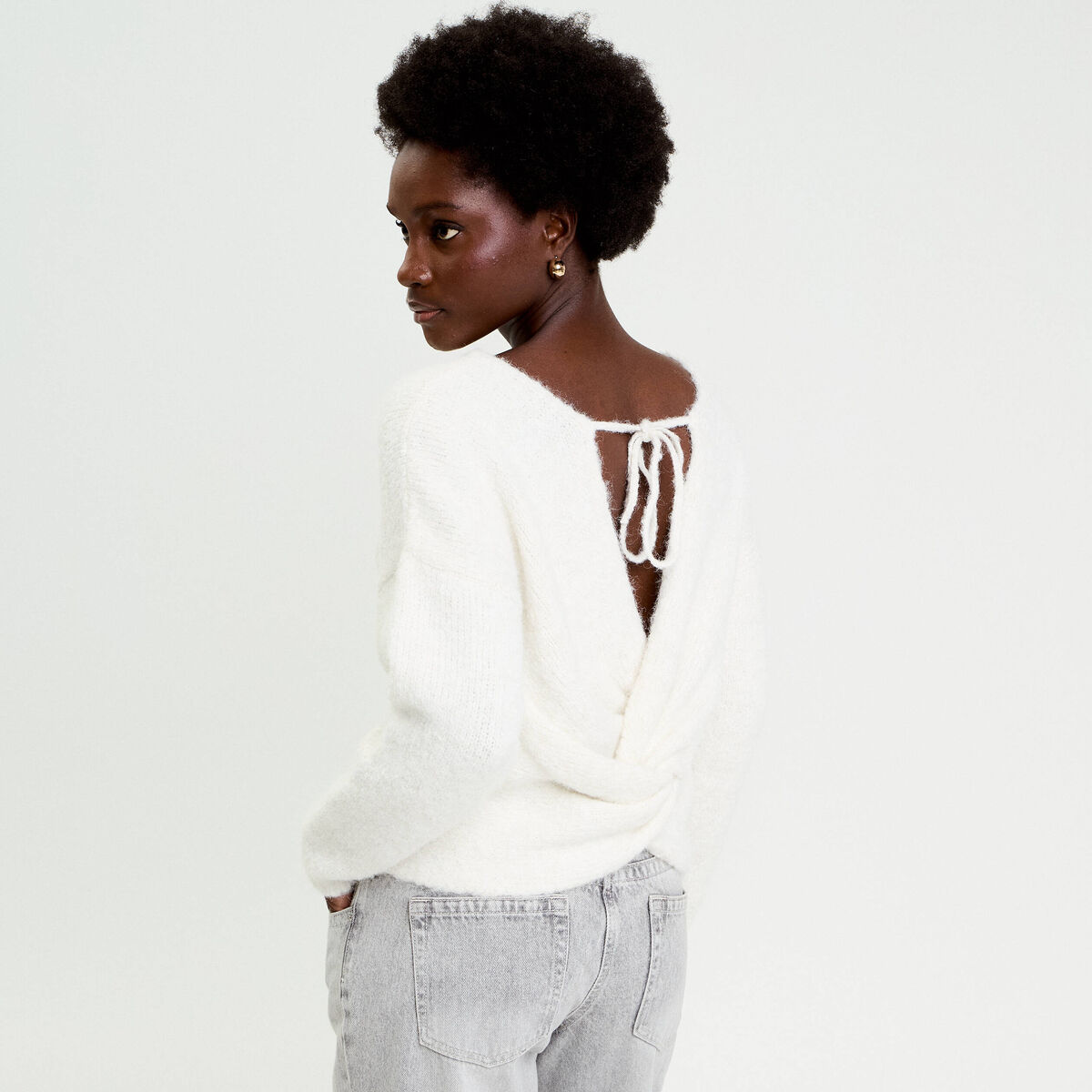 Pull décolleté dos ecru femme