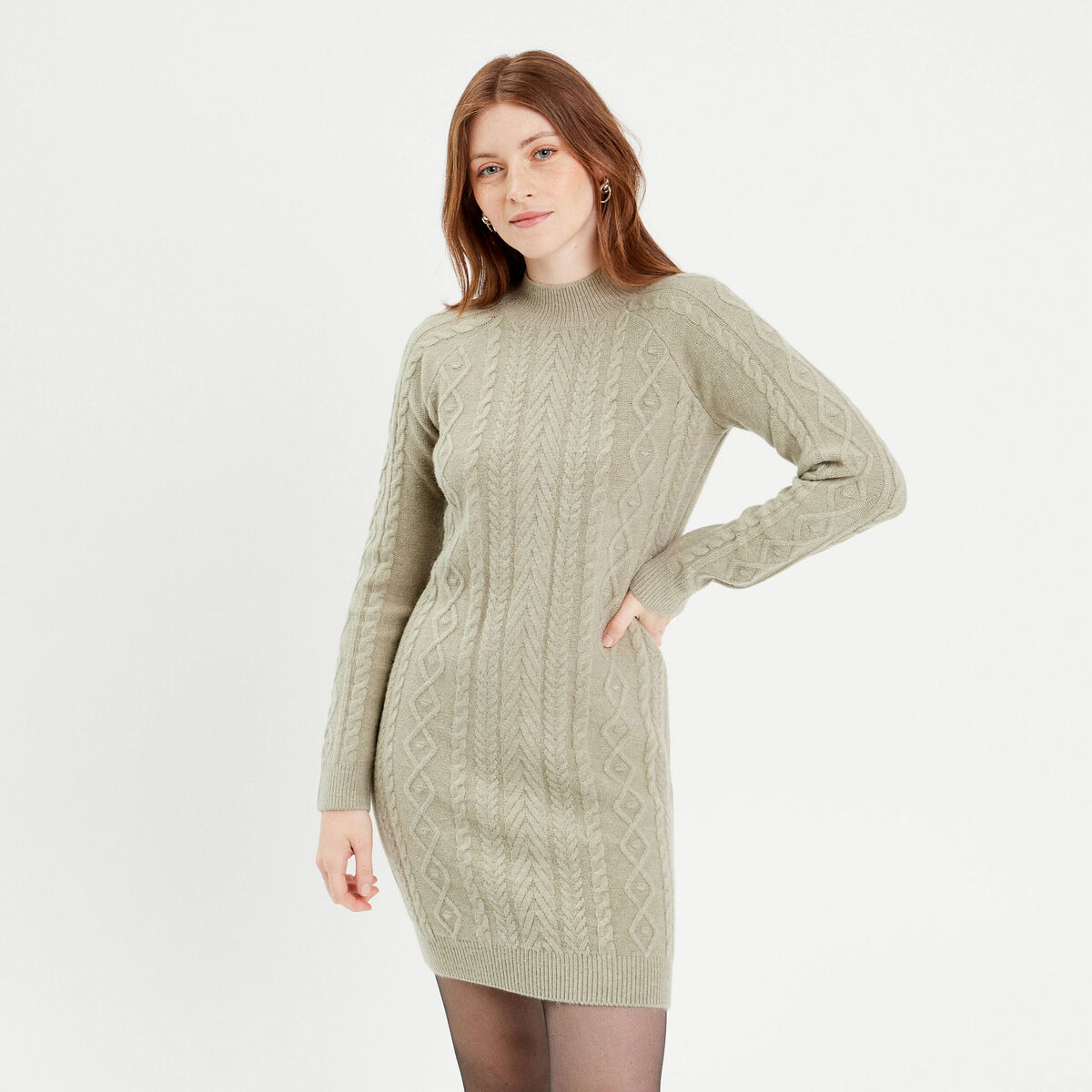 Robe pull ajustée torsades vert pastel femme