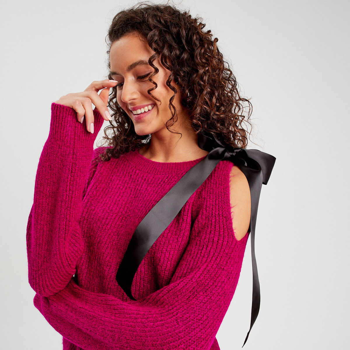 Pull avec noeud rose fushia femme