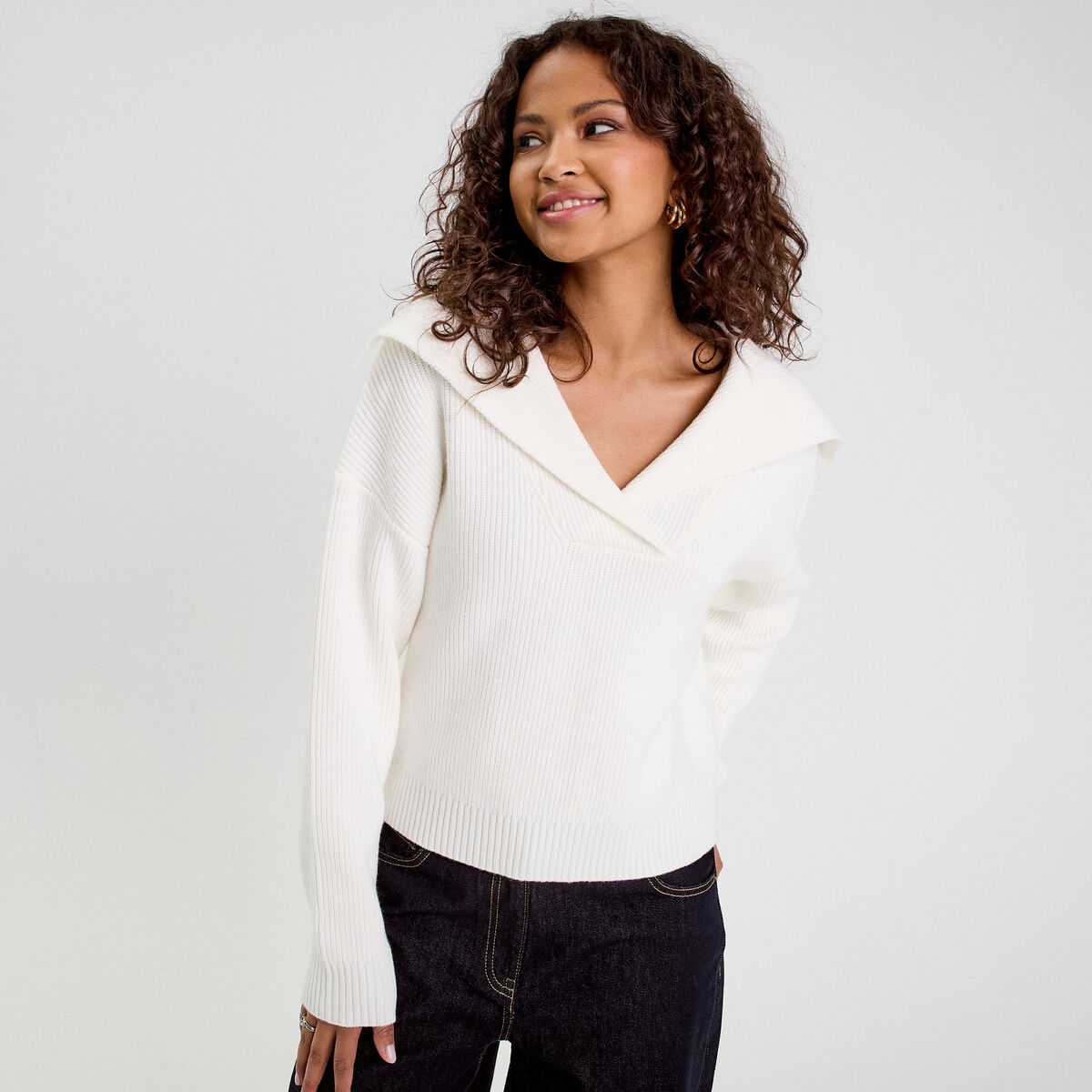 Pull col vareuse ecru femme