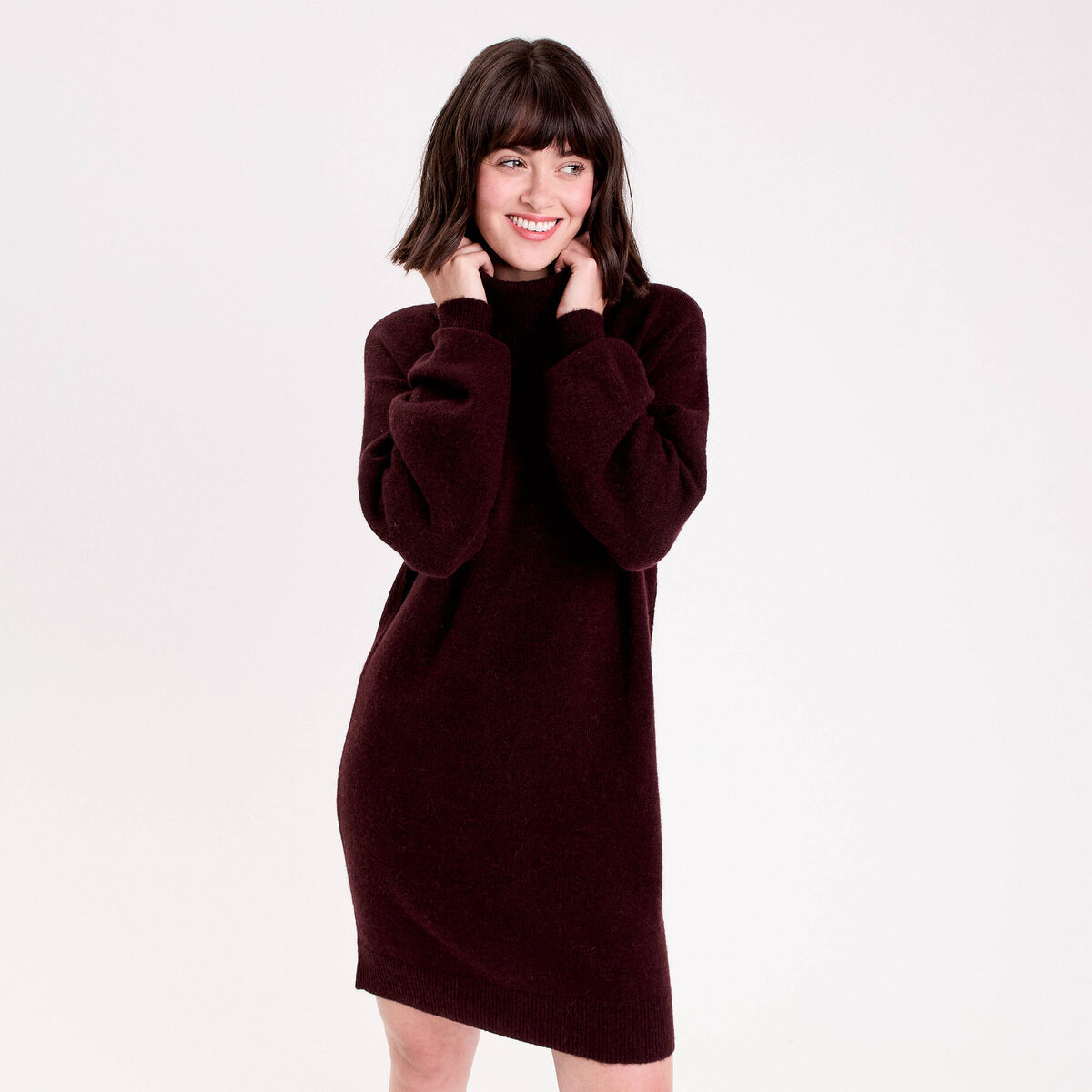 Robe pull col roulé rouge foncé femme