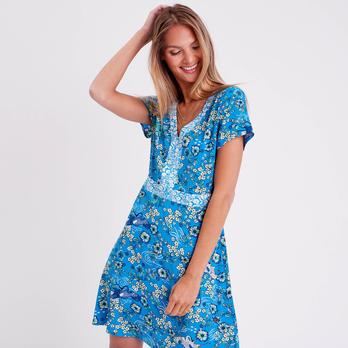 Robe droite manches courtes bleu clair femme