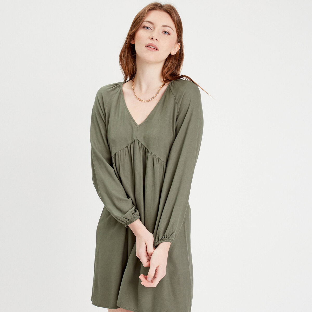 Robe évasée manches longues vert kaki femme