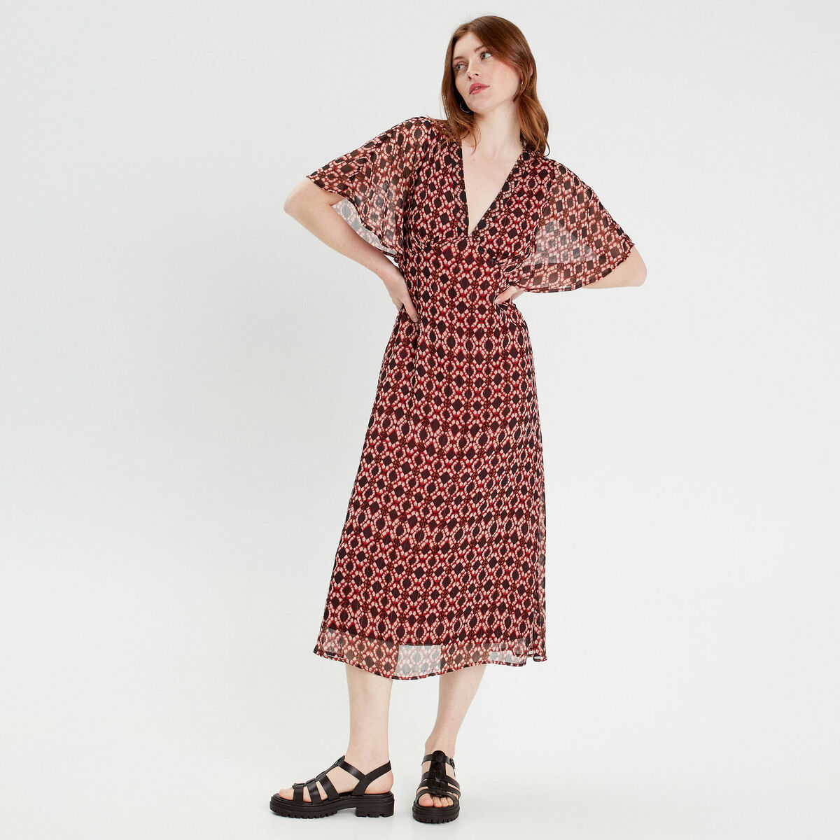 Robe évasée manches courtes rouge femme