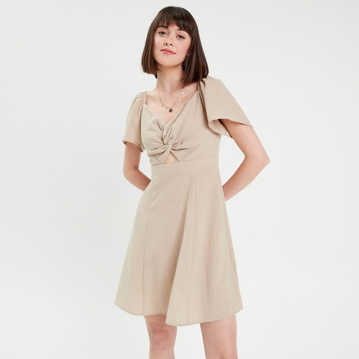 Robe patineuse manches courtes beige femme
