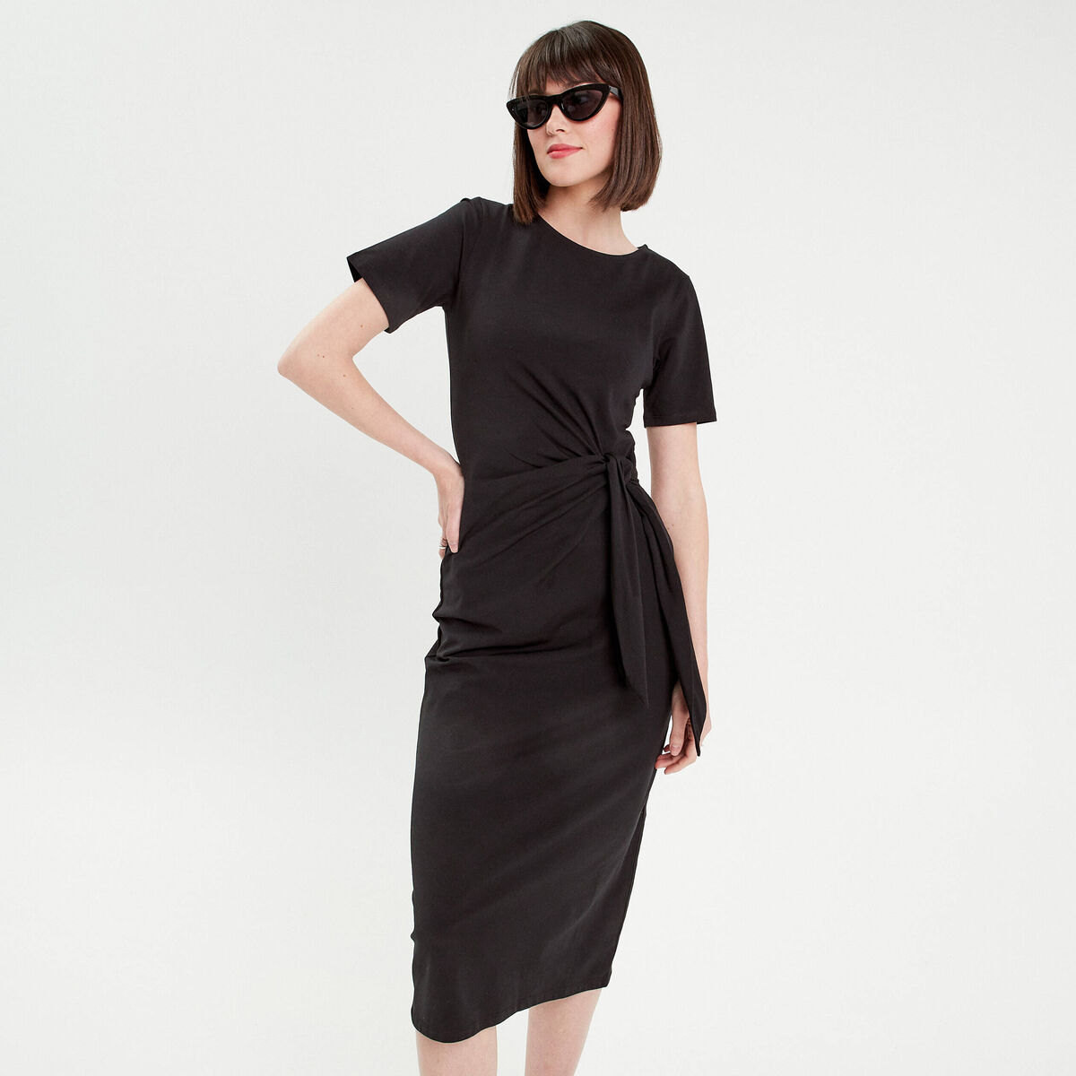 Robe longue moulante noeud noir femme