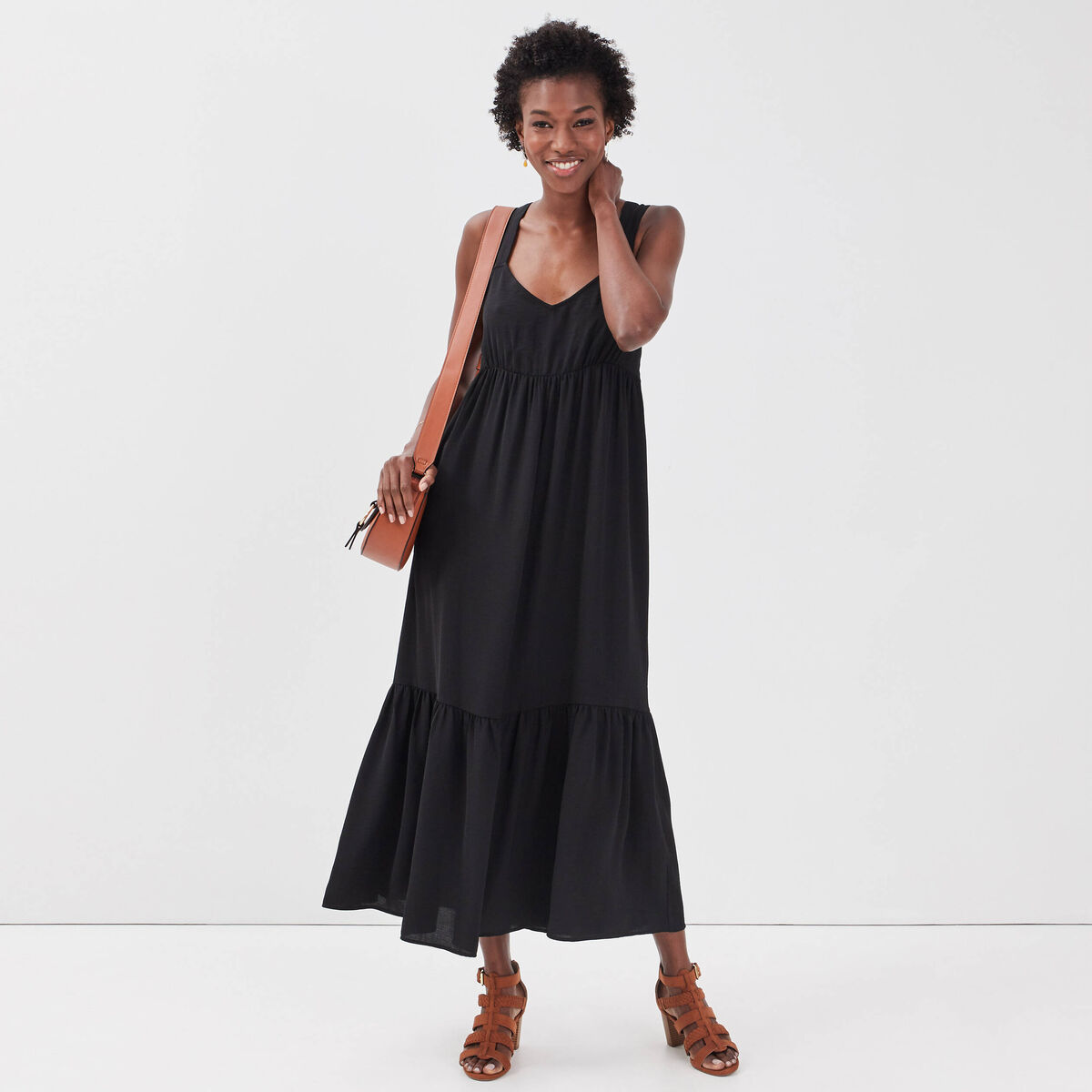 Robe longue évasée bretelles noir femme