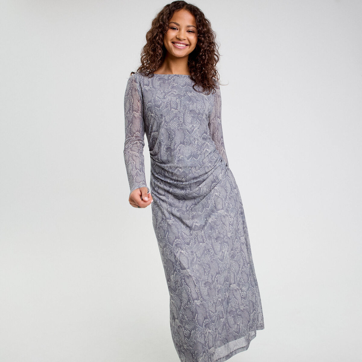 Robe longue ajustée fronces bleu gris femme