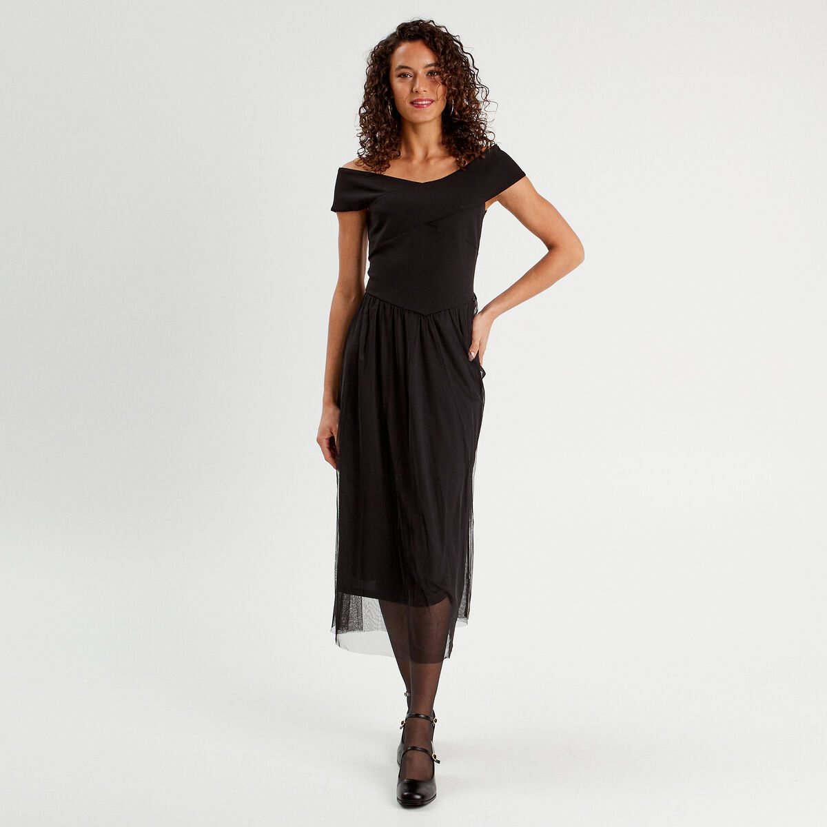 Robe midi bustier évasée noir femme