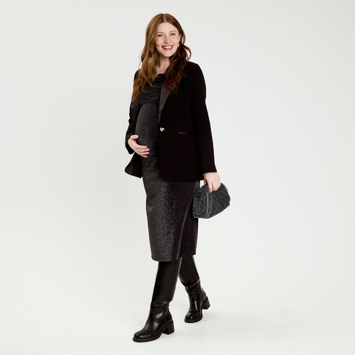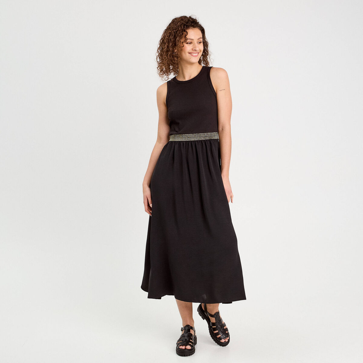 Robe longue fils métallisés noir femme