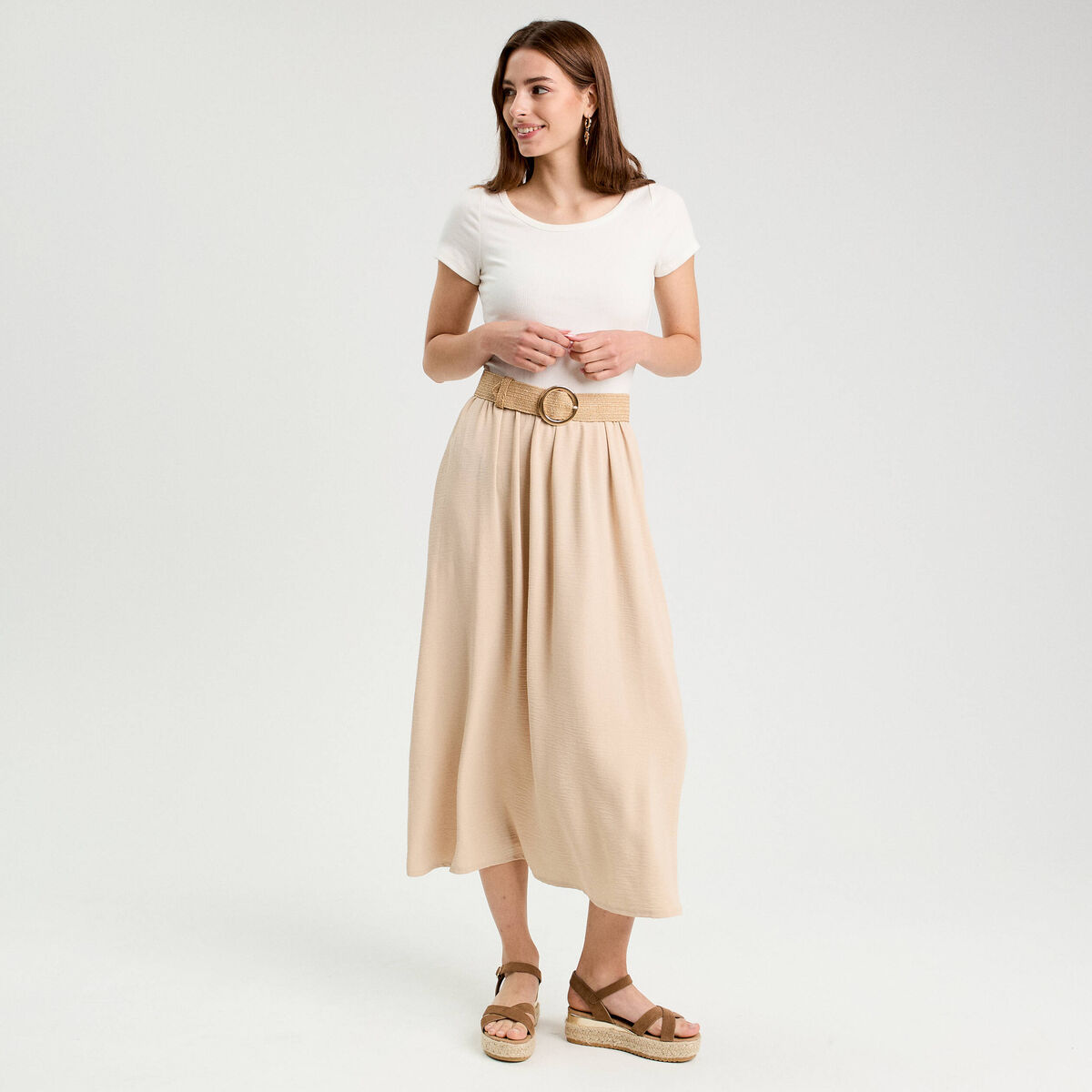 Robe longue évasée 2-en-1 beige femme