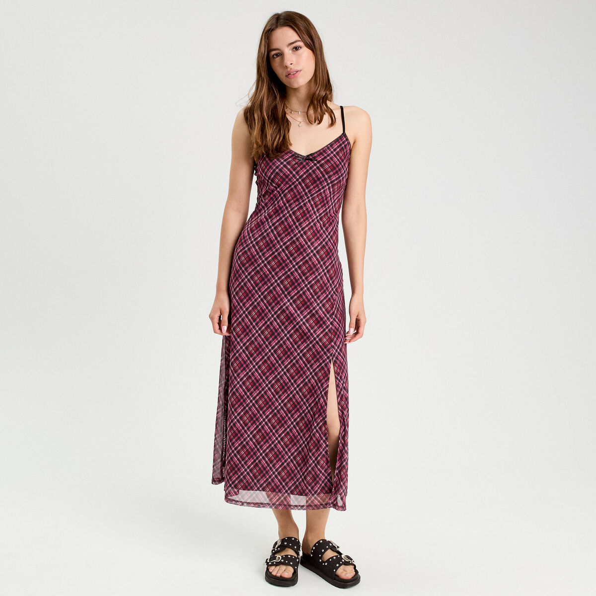 Robe longue droite bretelles rouge cerise femme