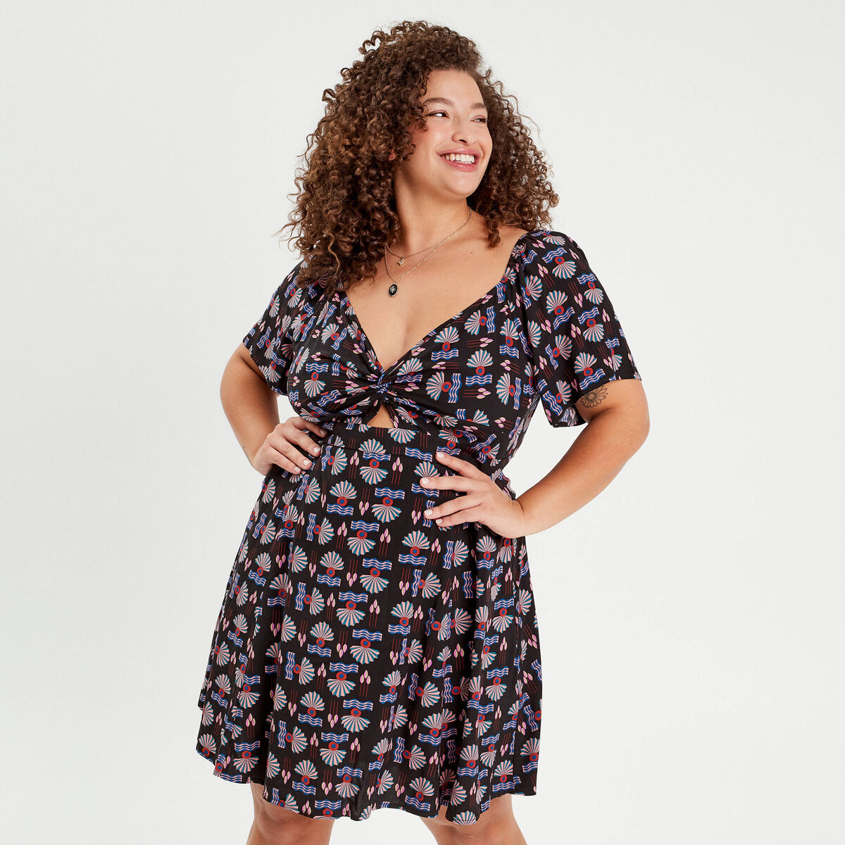 Robe évasée manches courtes noir femme