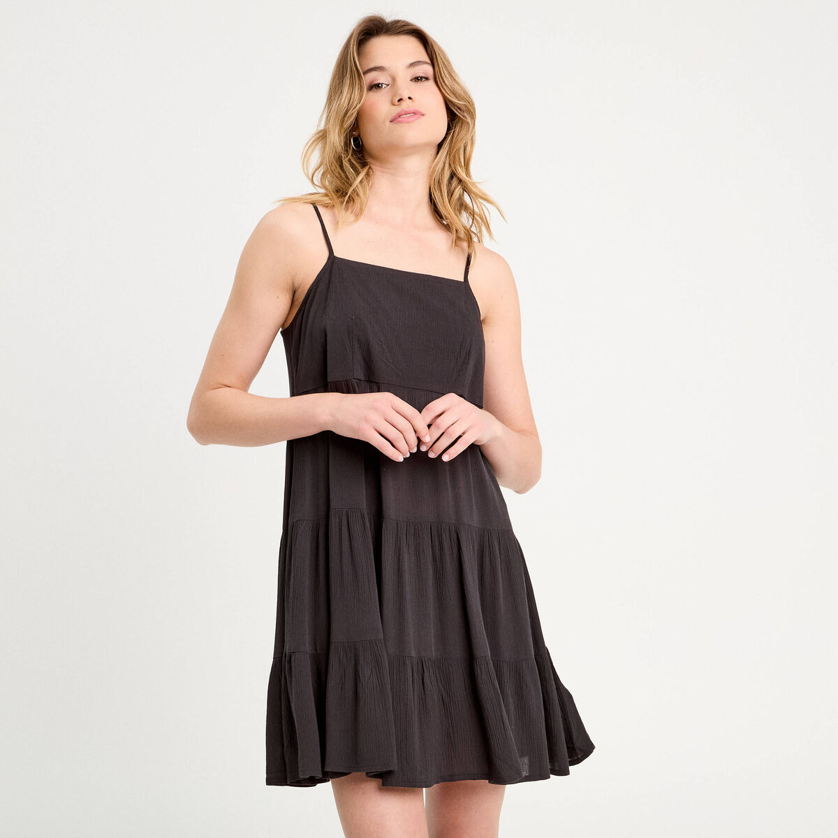 Robe évasée bretelles noir femme