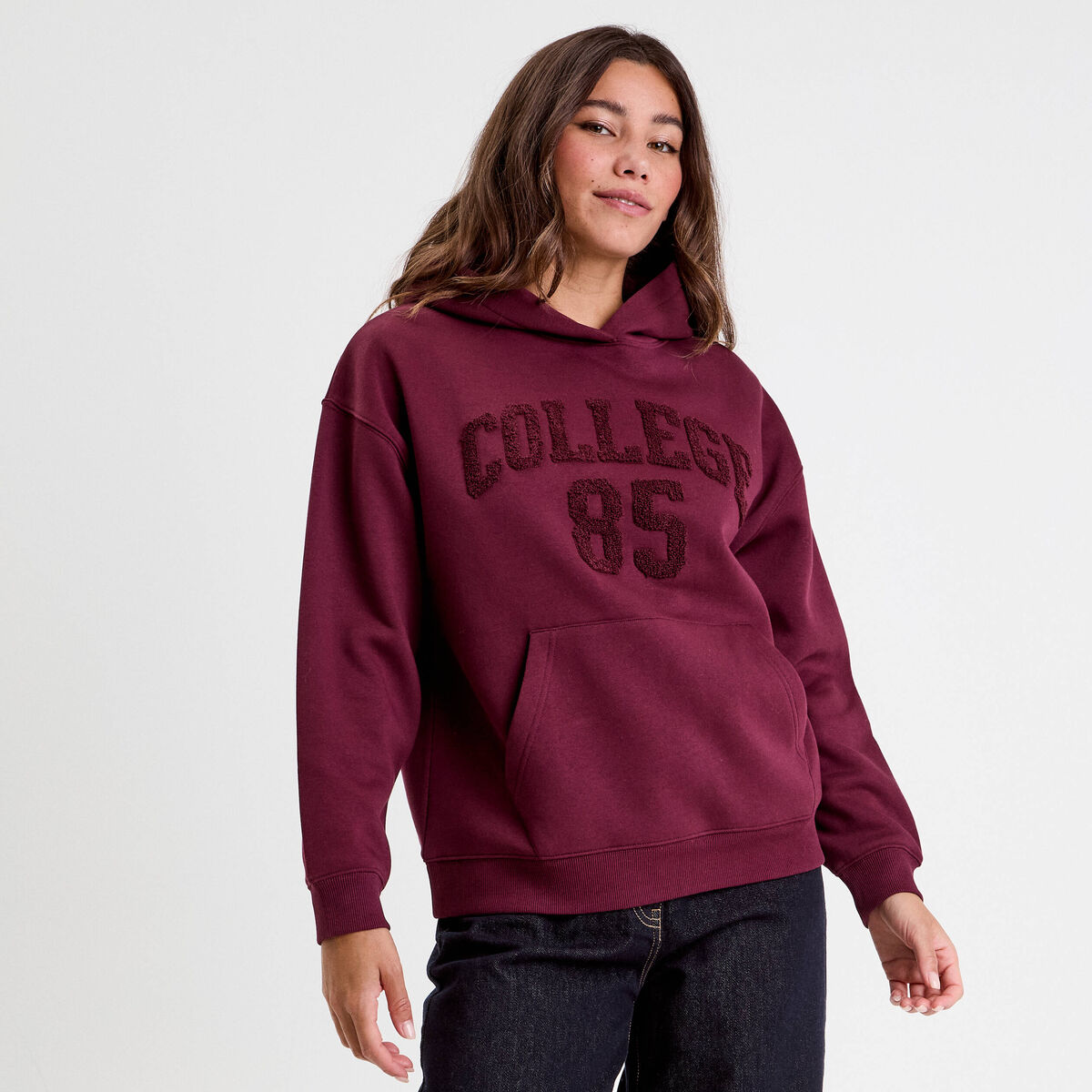 Sweat à capuche 1 poche violet foncé femme