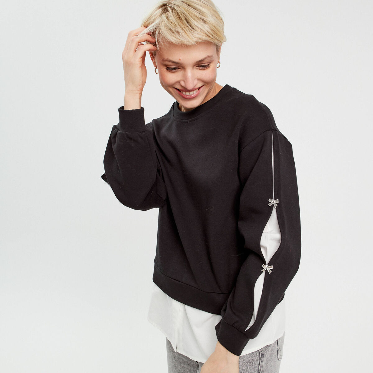 Sweat manches détails bijoux noir femme