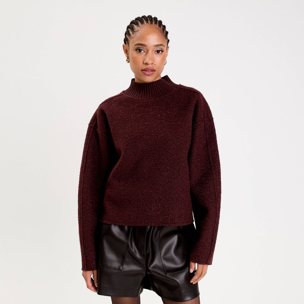 Sweat col montant rouge foncé femme